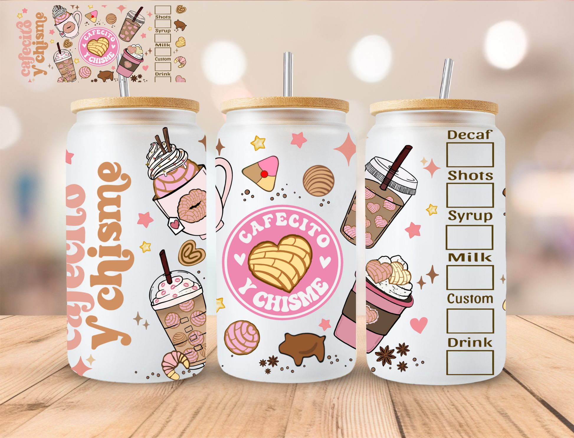 Cafecito Y Chisme - 16 oz / 20 oz Libby UV DTF Wrap