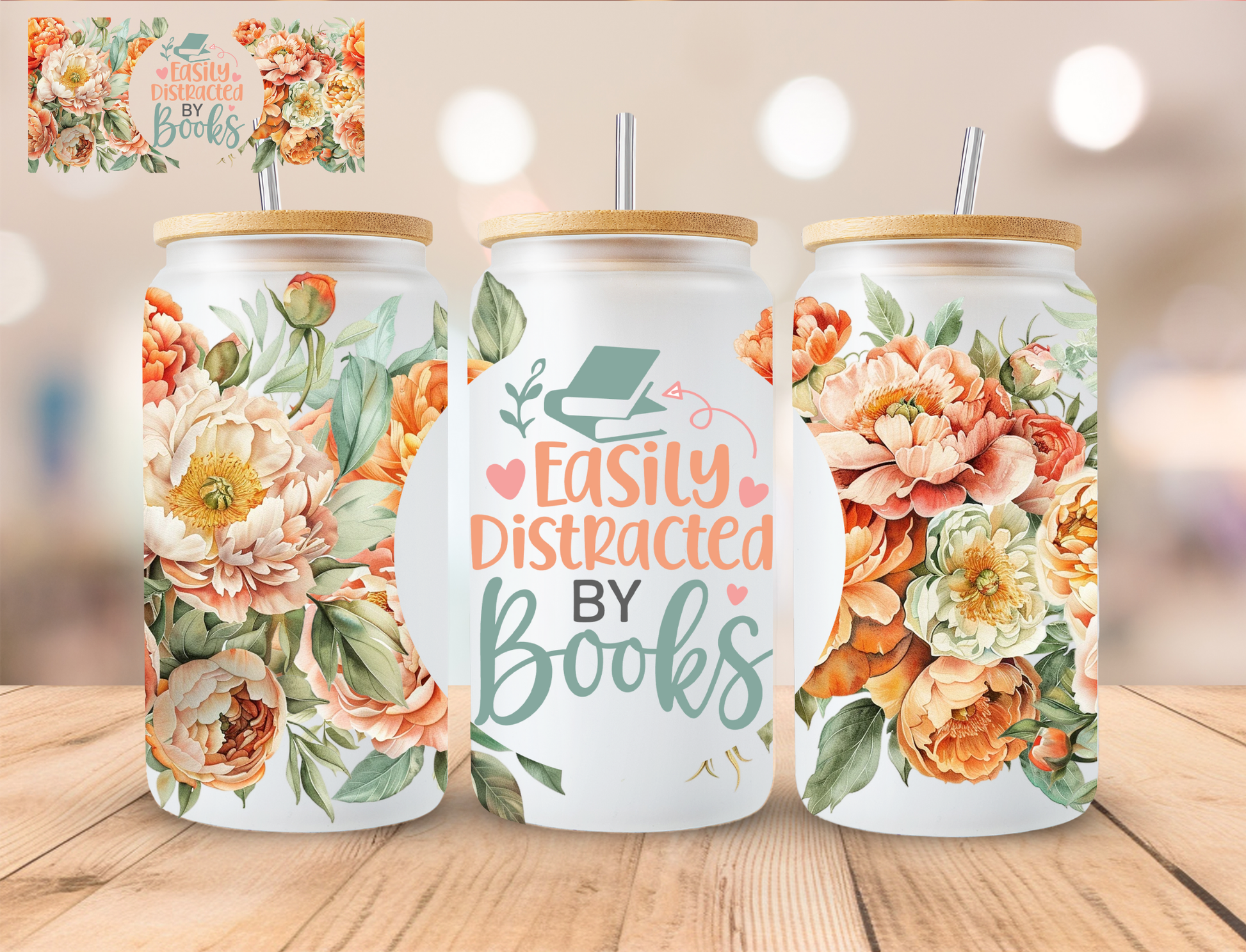 Easily Distracted By Books - 16 oz / 20 oz Libby UV DTF Wrap