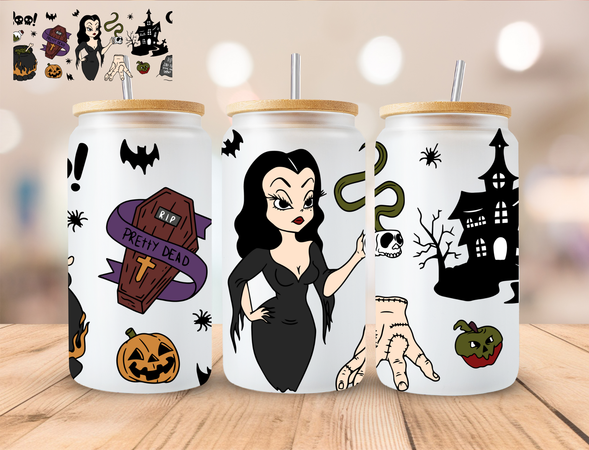 Halloween Pretty Dead Addams - 16 oz / 20 oz Libby UV DTF Wrap