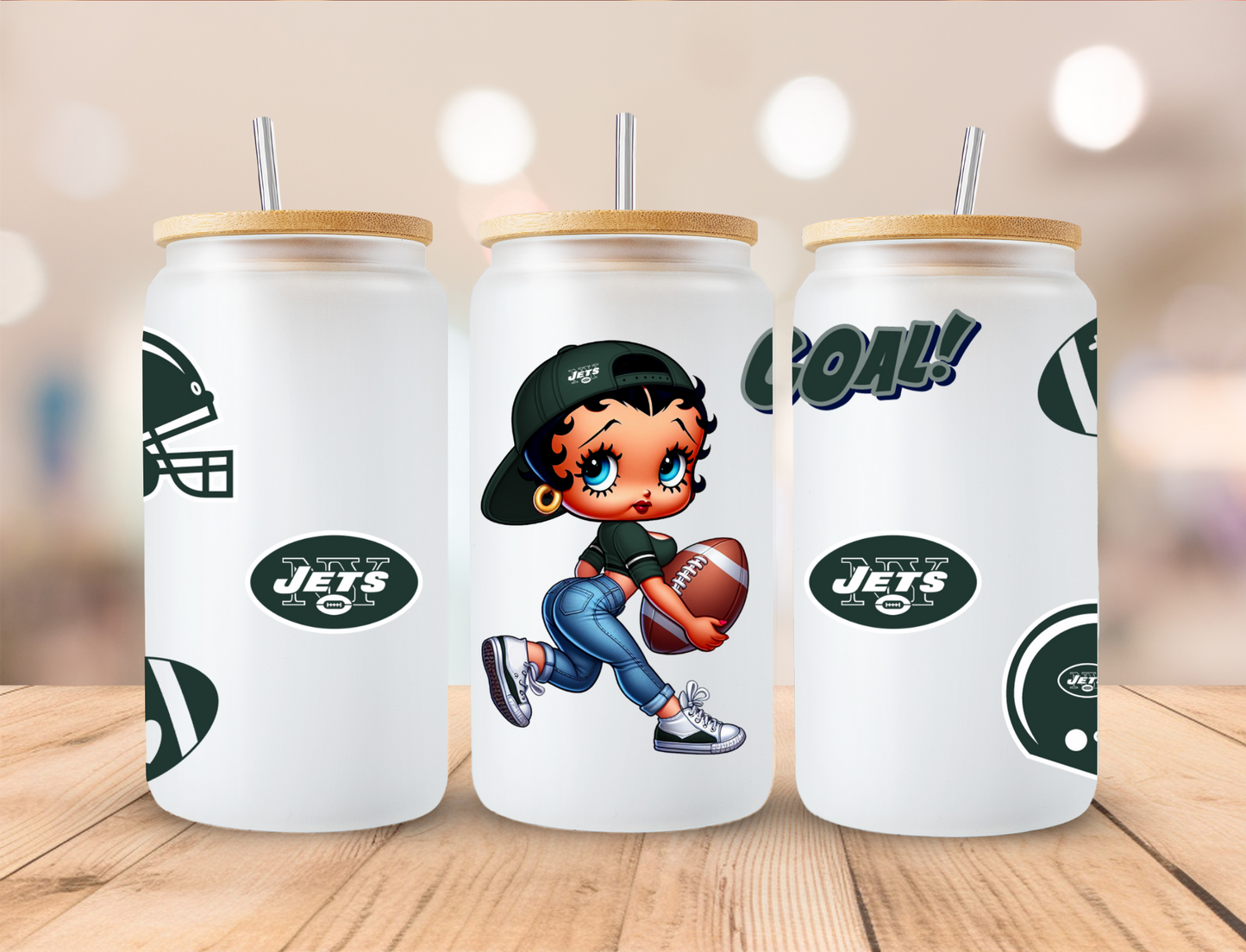 Football Jets Boop - 16 oz / 20 oz Libby UV DTF Wrap