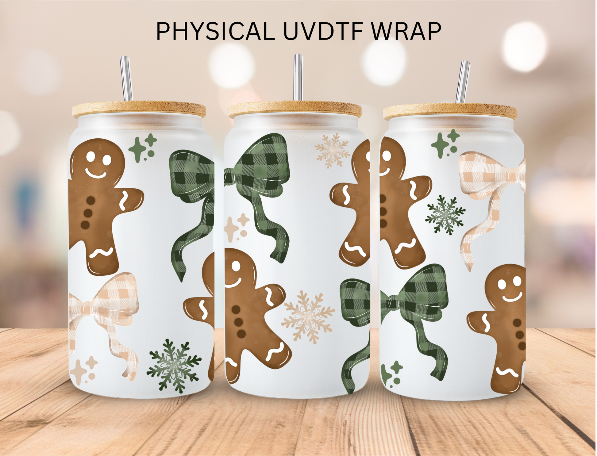 Christmas Gingerbread And Bows - 16 oz / 20 oz Libby UV DTF Wrap