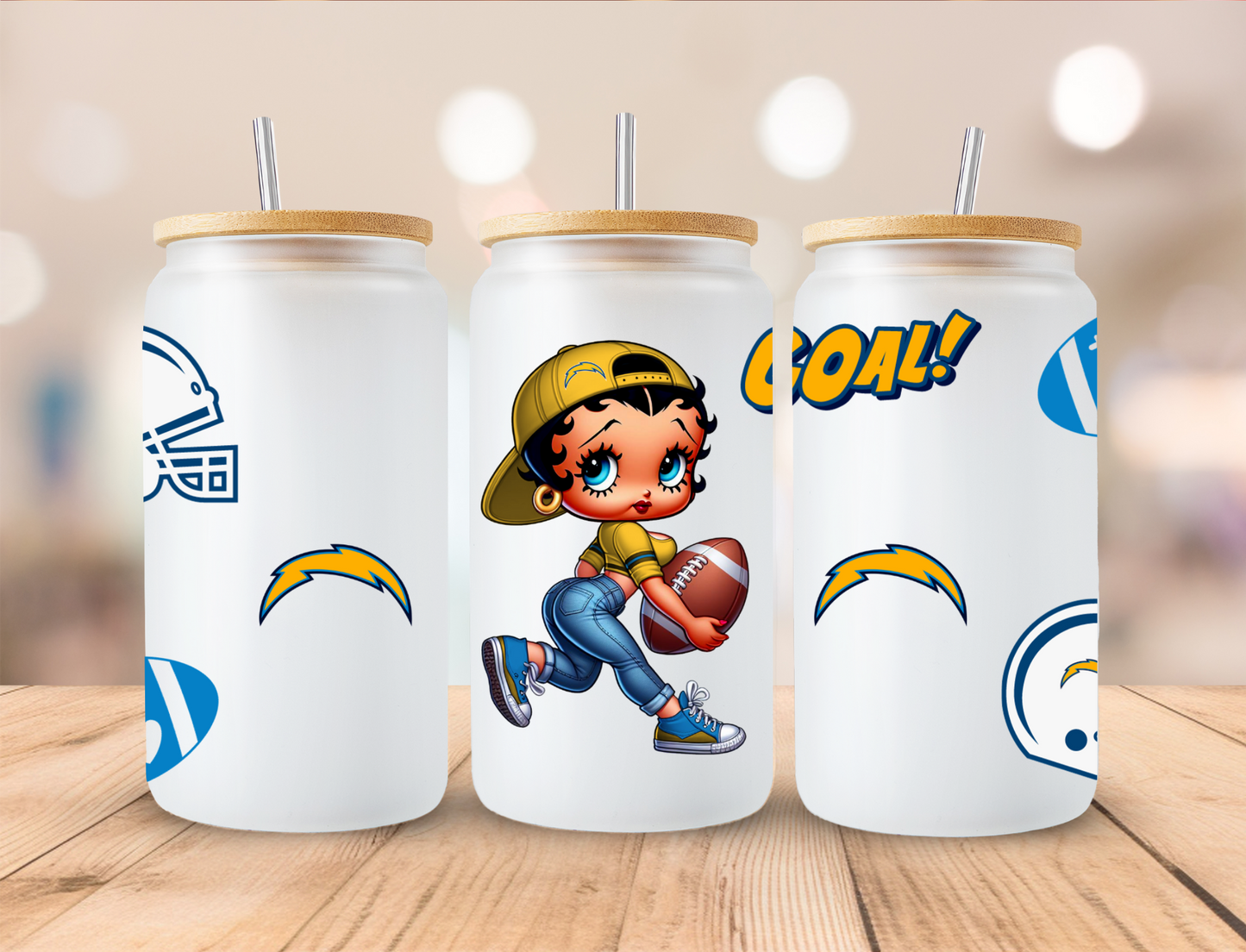 Football Chargers Boop - 16 oz / 20 oz Libby UV DTF Wrap