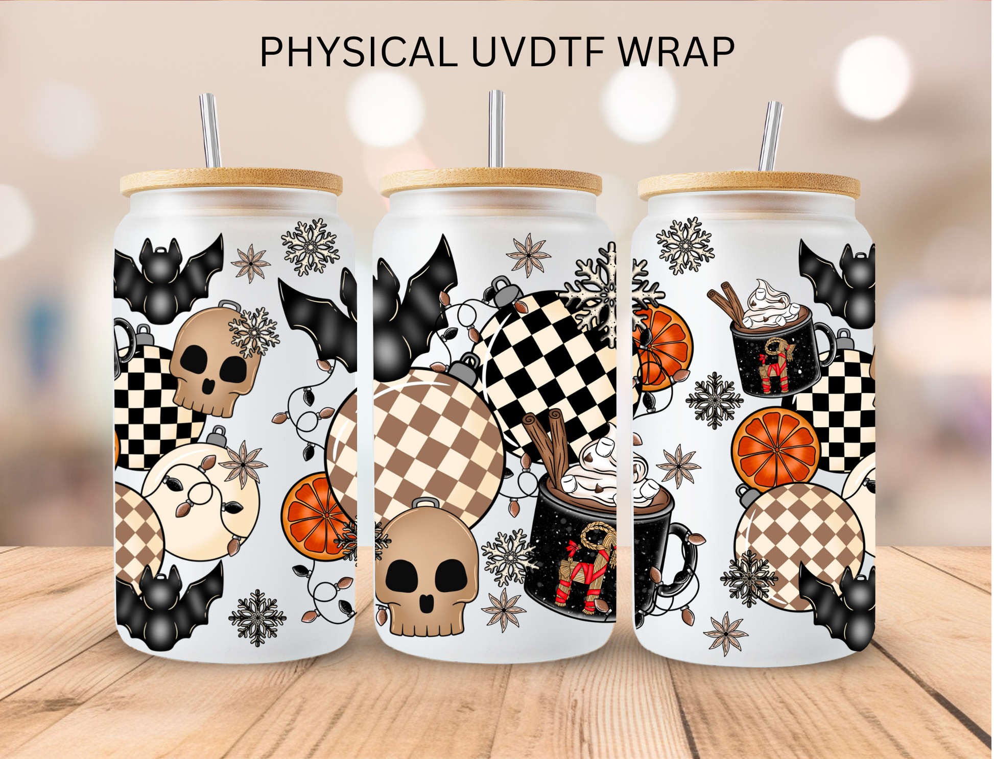 Halloween Checkered Ornaments - 16 oz / 20 oz Libby UV DTF Wrap