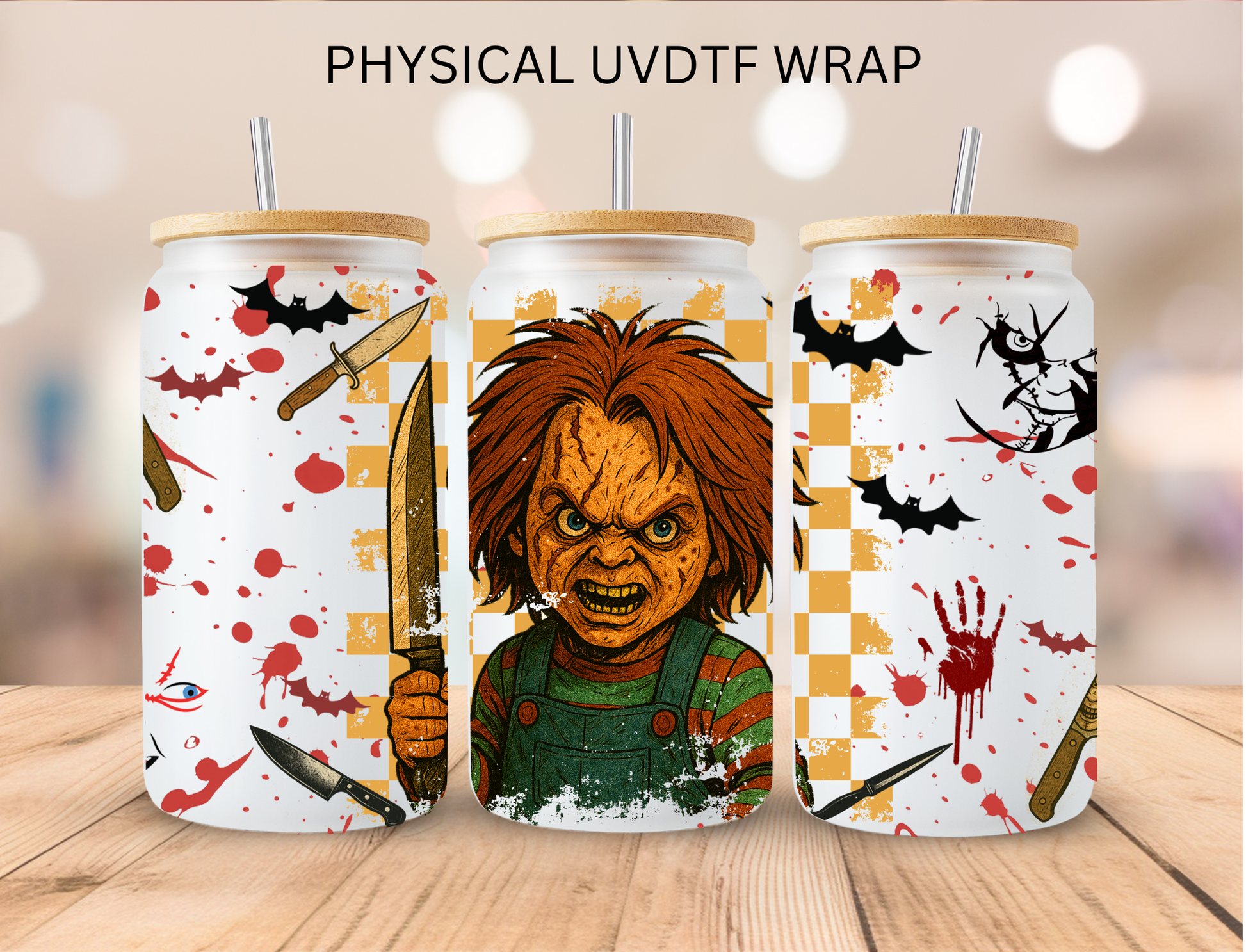 Halloween Checkered Doll - 16 oz / 20 oz Libby UV DTF Wrap