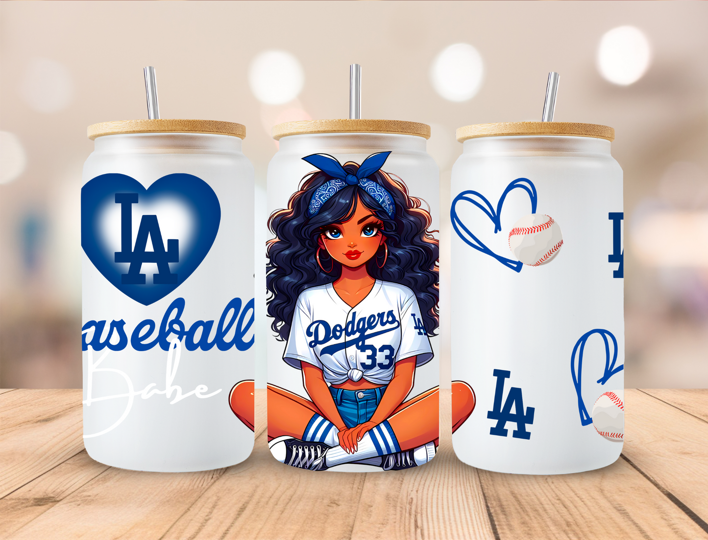 Baseball Babe Dodgers - 16 oz / 20 oz Libby UV DTF Wrap