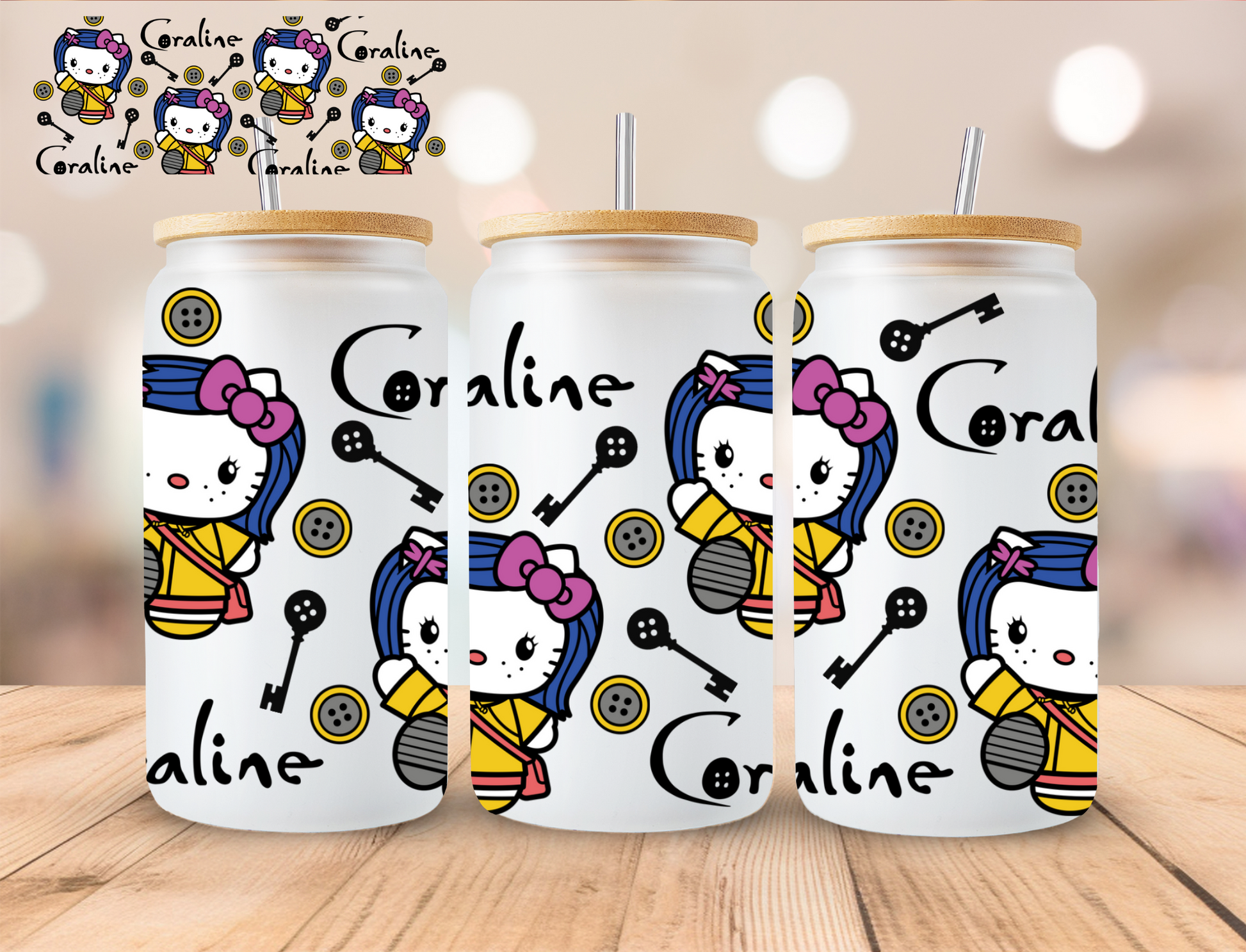 Button Eyed Kitty - 16 oz / 20 oz Libby UV DTF Wrap