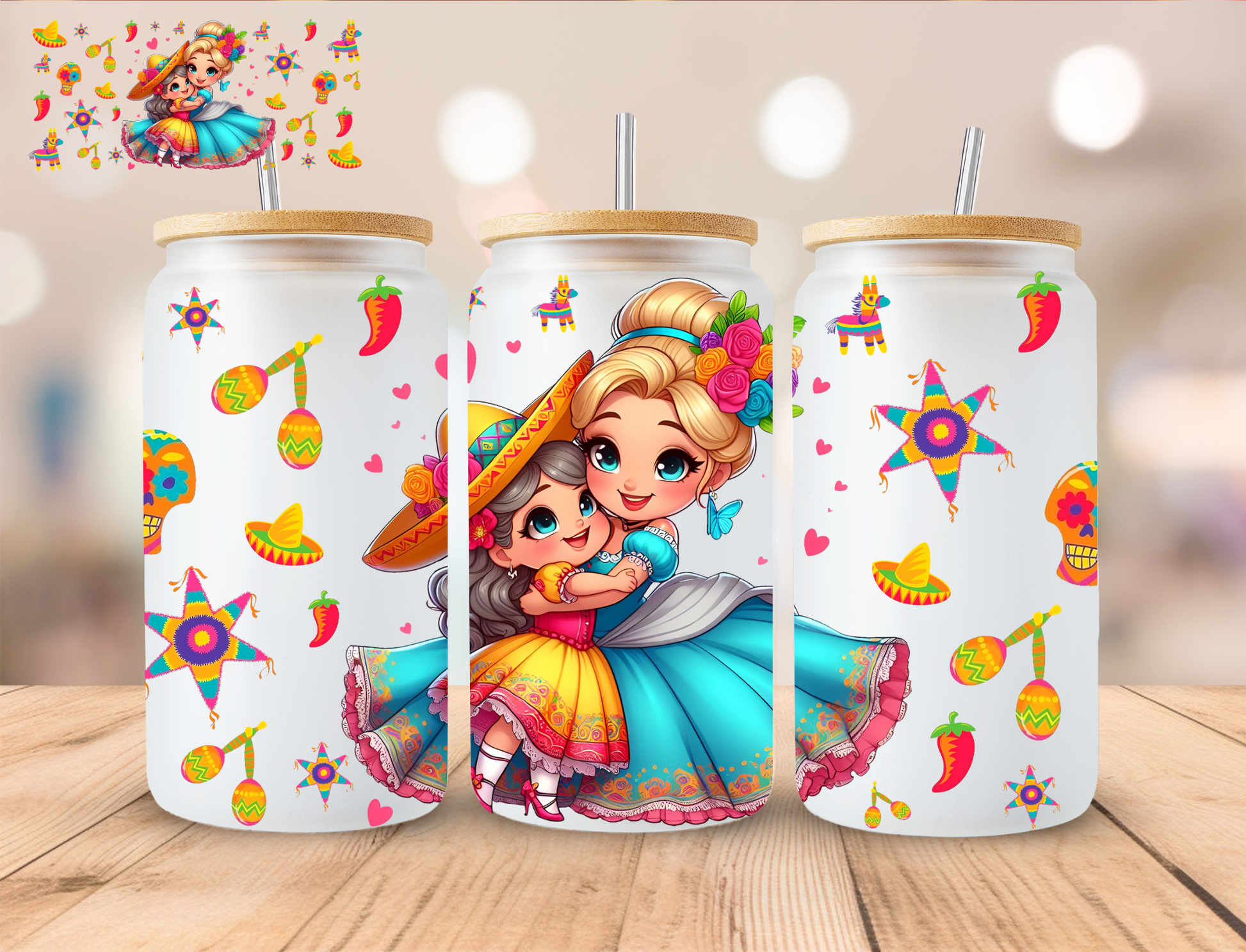 Cinco De Mayo Glass Slipper Princess- 16 oz / 20 oz Libby UV DTF Wrap