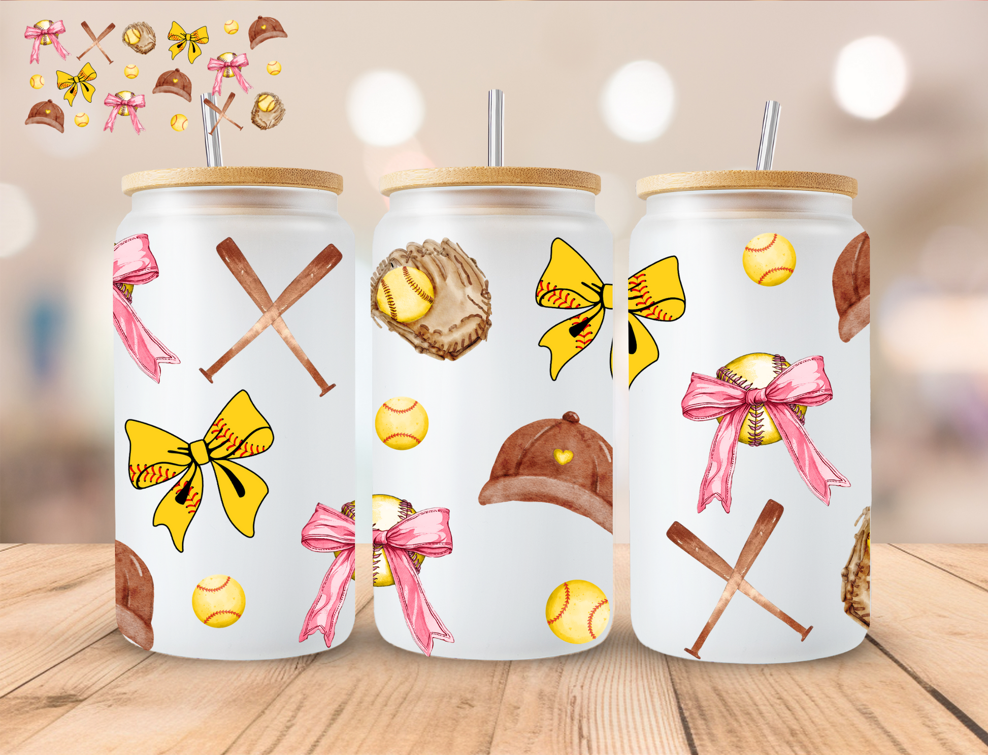 Coquette Softball and Bows - 16 oz / 20 oz Libby UV DTF Wrap