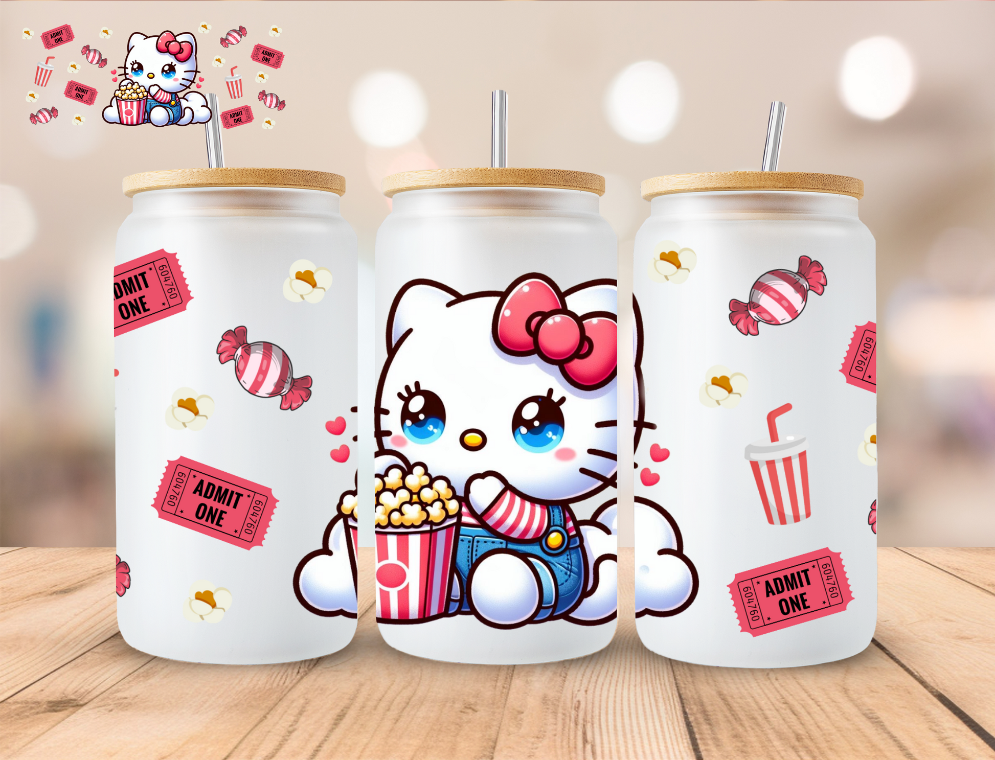 Movie Theatre Kitty - 16 oz / 20 oz Libby UV DTF Wrap