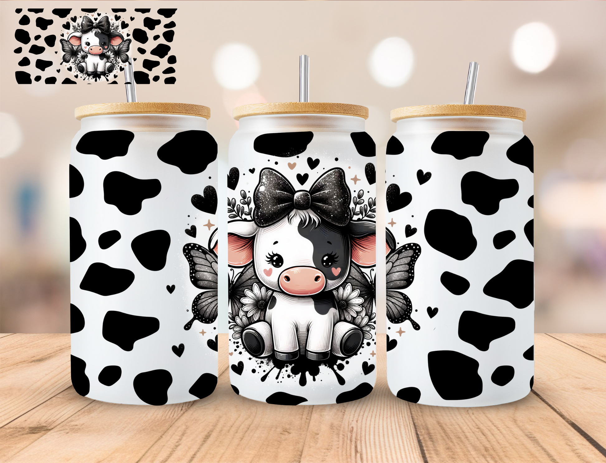 Floral Cow - 16 oz / 20 oz Libby UV DTF Wrap