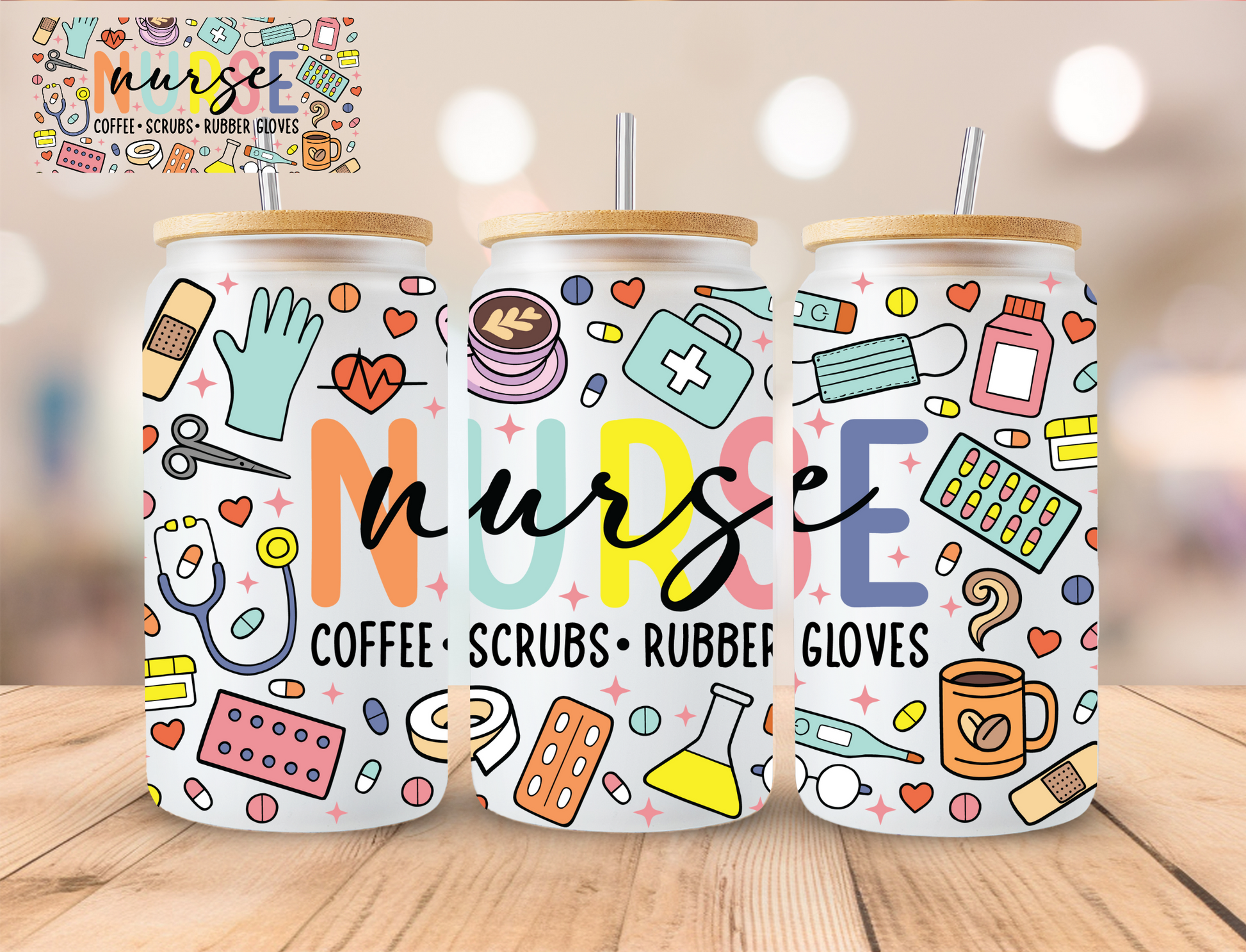 Nurse Aesthetic - 16 oz / 20 oz Libby UV DTF Wrap
