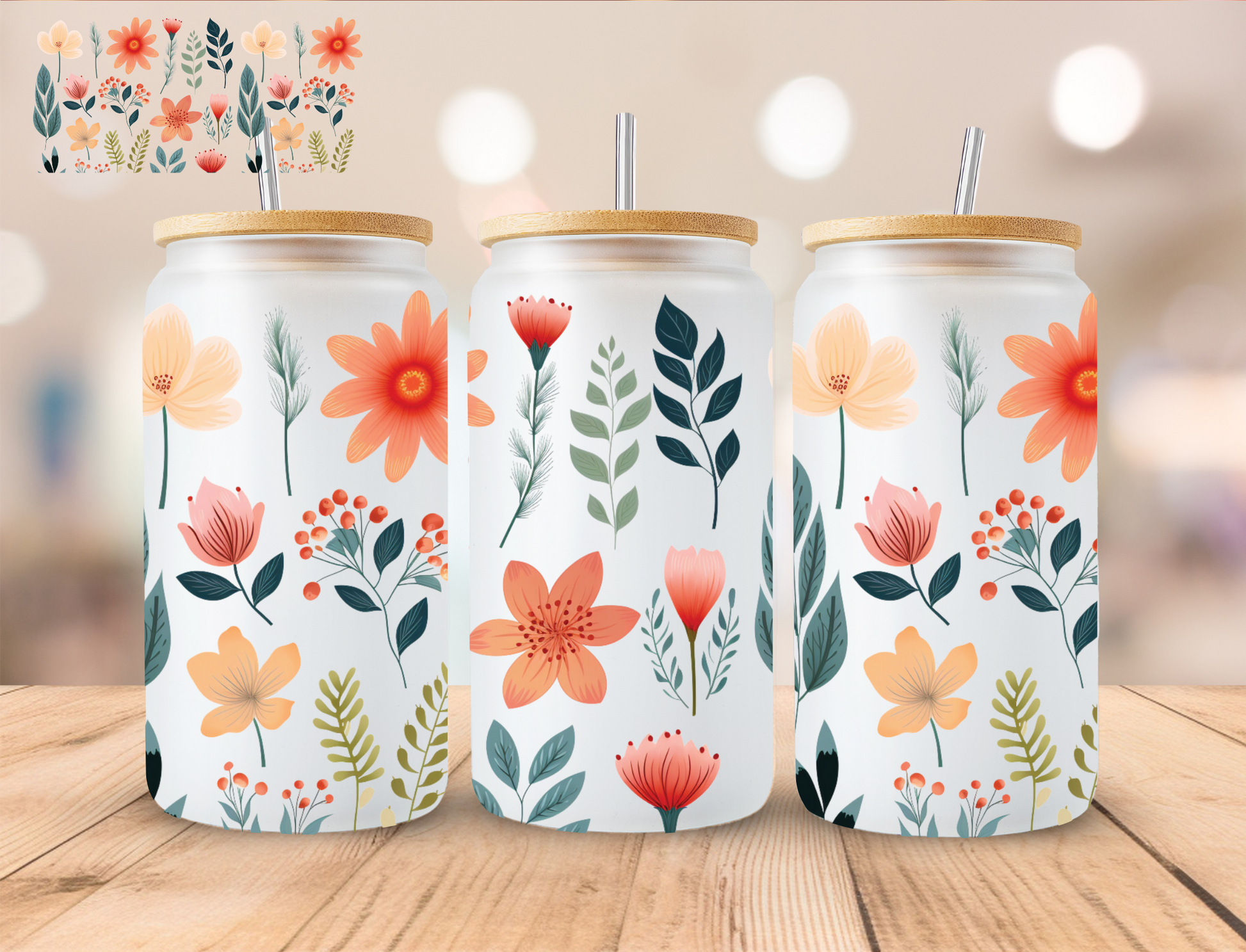 Red And Blue Floral - 16 oz / 20 oz Libby UV DTF Wrap