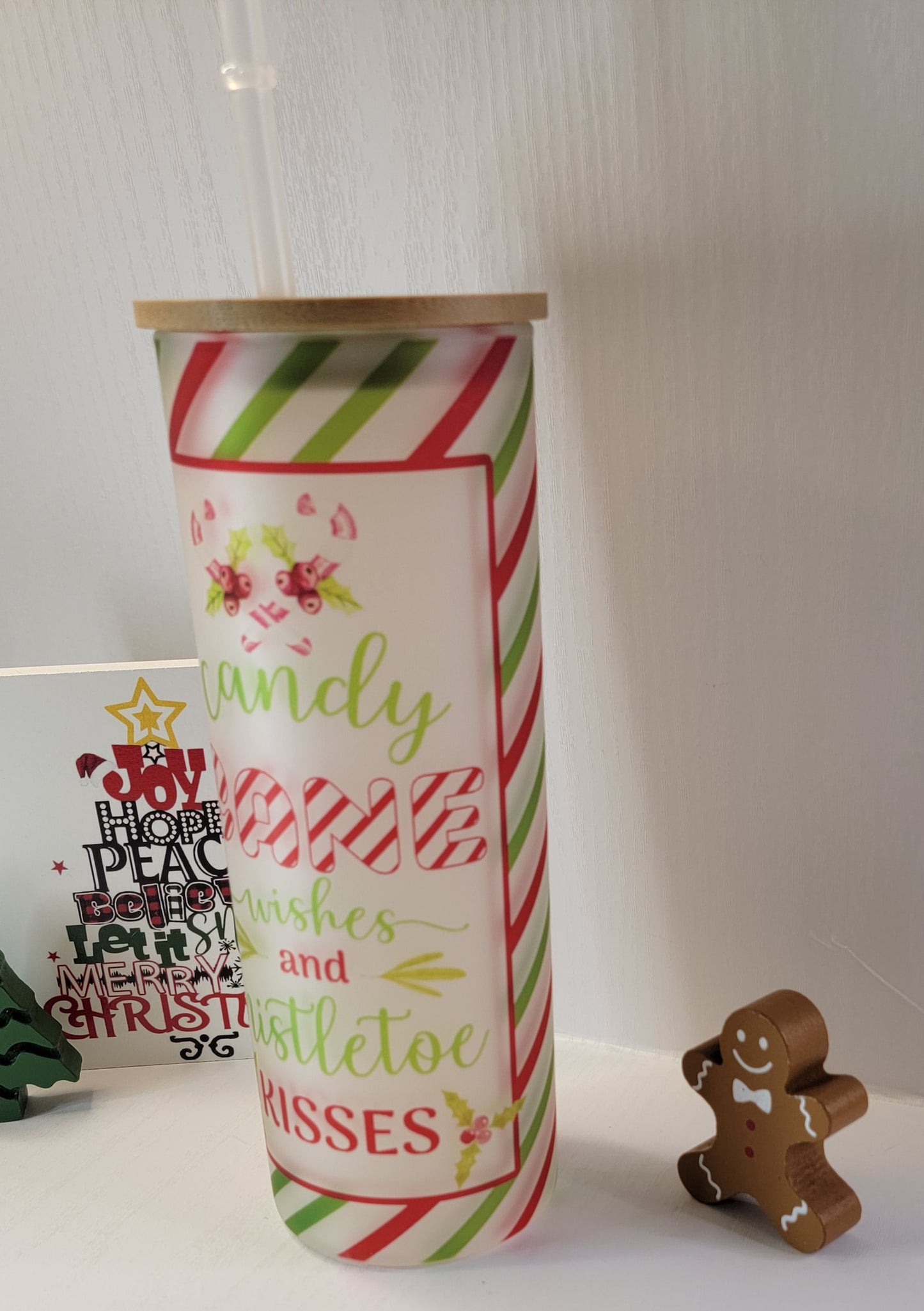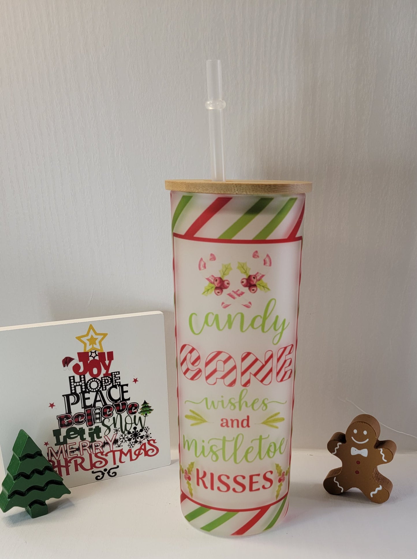 Candy Cane Wishes Christmas 25 oz Coffee Can Glass Tumbler