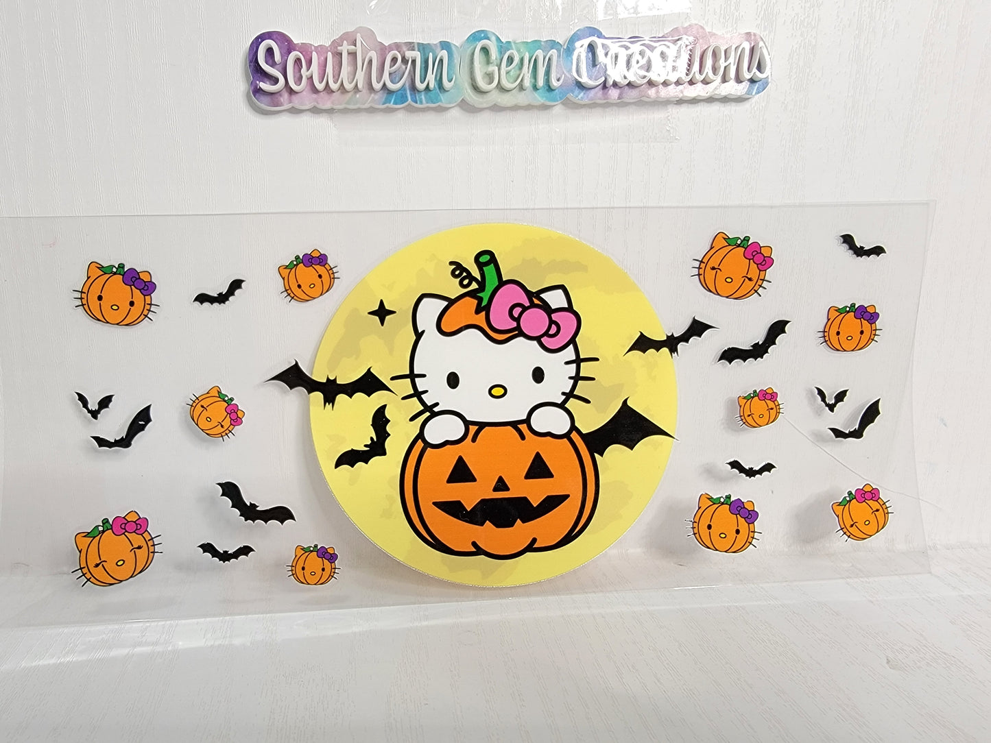 Halloween Kitty In Pumpkin - 16 oz Libby UV DTF Wrap RTS