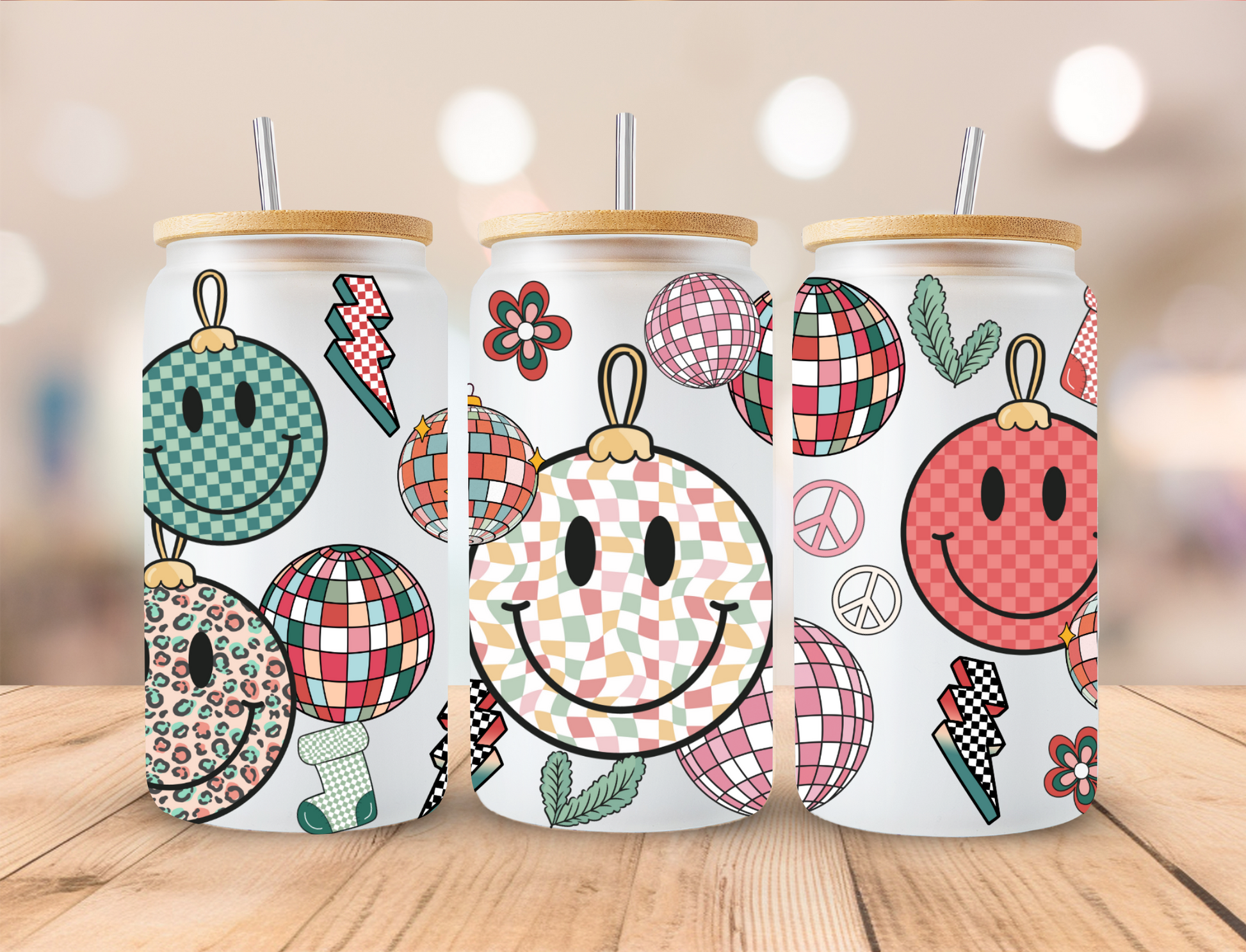 Christmas Retro Ornaments - 16oz Libby UV DTF Wrap
