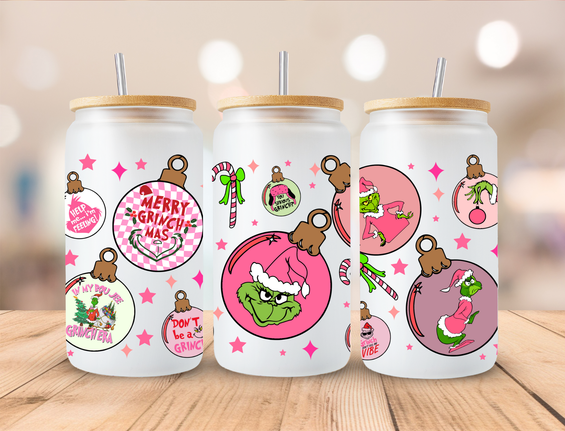 Christmas Mean Green Ornaments - 16oz Libby UV DTF Wrap