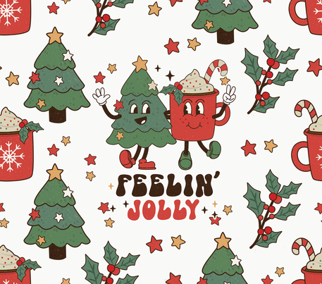 Christmas Trees - "Feelin' Jolly" Green & Red w/ White Background - 20 Oz Sublimation Transfer