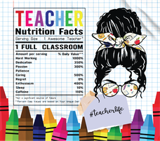 School Teacher "Nutrition Facts" 20 Oz Sublimation Transfer