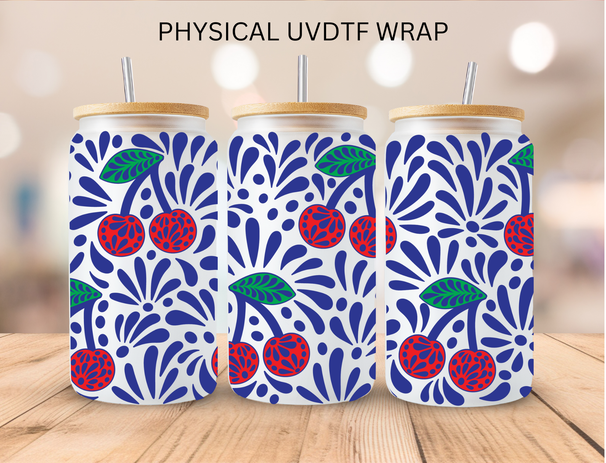 Blue Colored Cherry Talavera - 16 oz / 20 oz Libby UV DTF