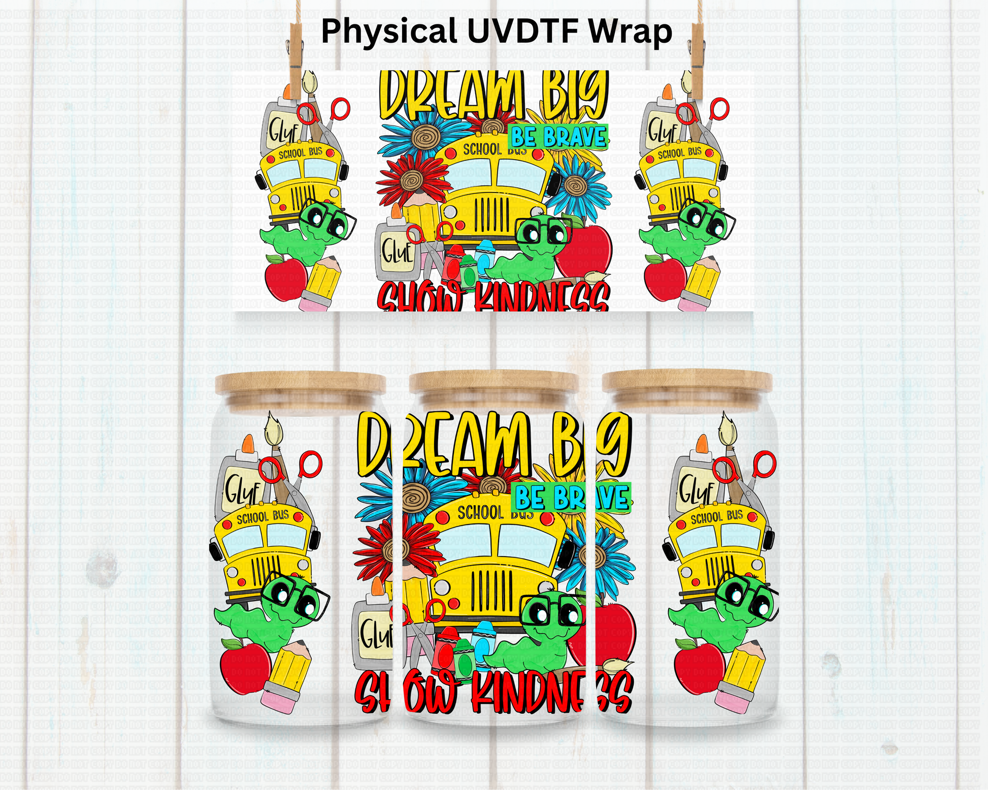 School Bus Dream Big Show Kindess - 16 oz / 20 oz Libby UV DTF
