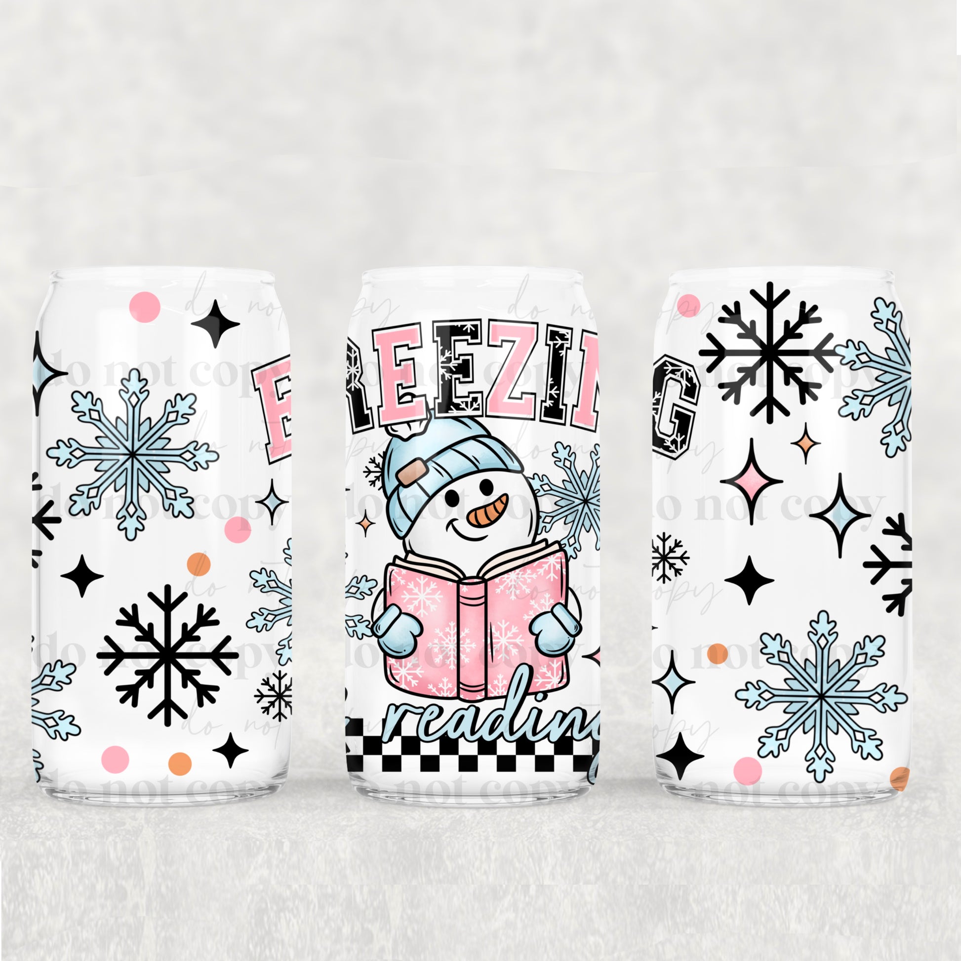 Checkered Winter Snowman Freezing Reading - 16 oz / 20 oz Libby UV DTF Wrap