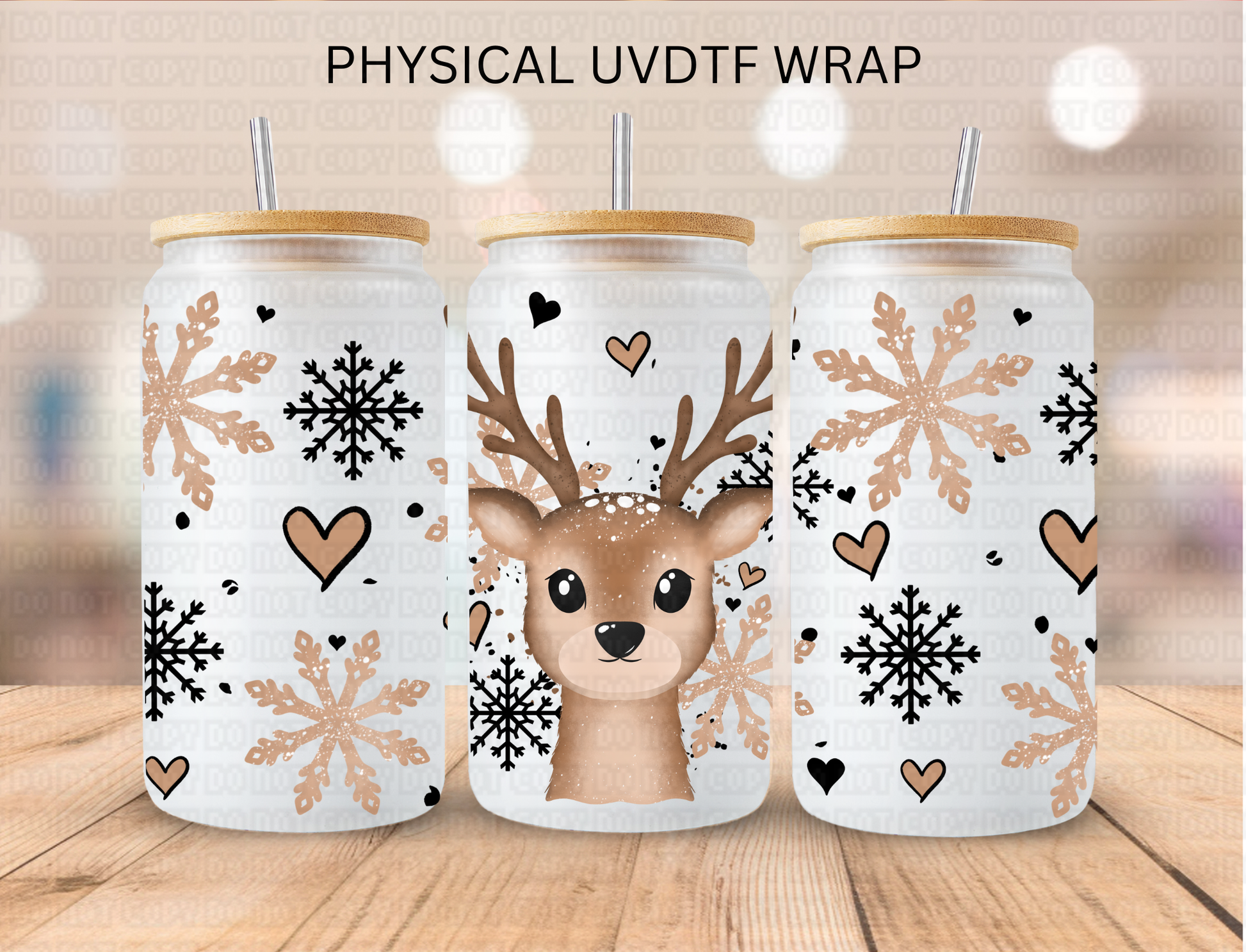 Christmas Snowflake Reindeer - 16 oz / 20 oz Libby UV DTF Wrap