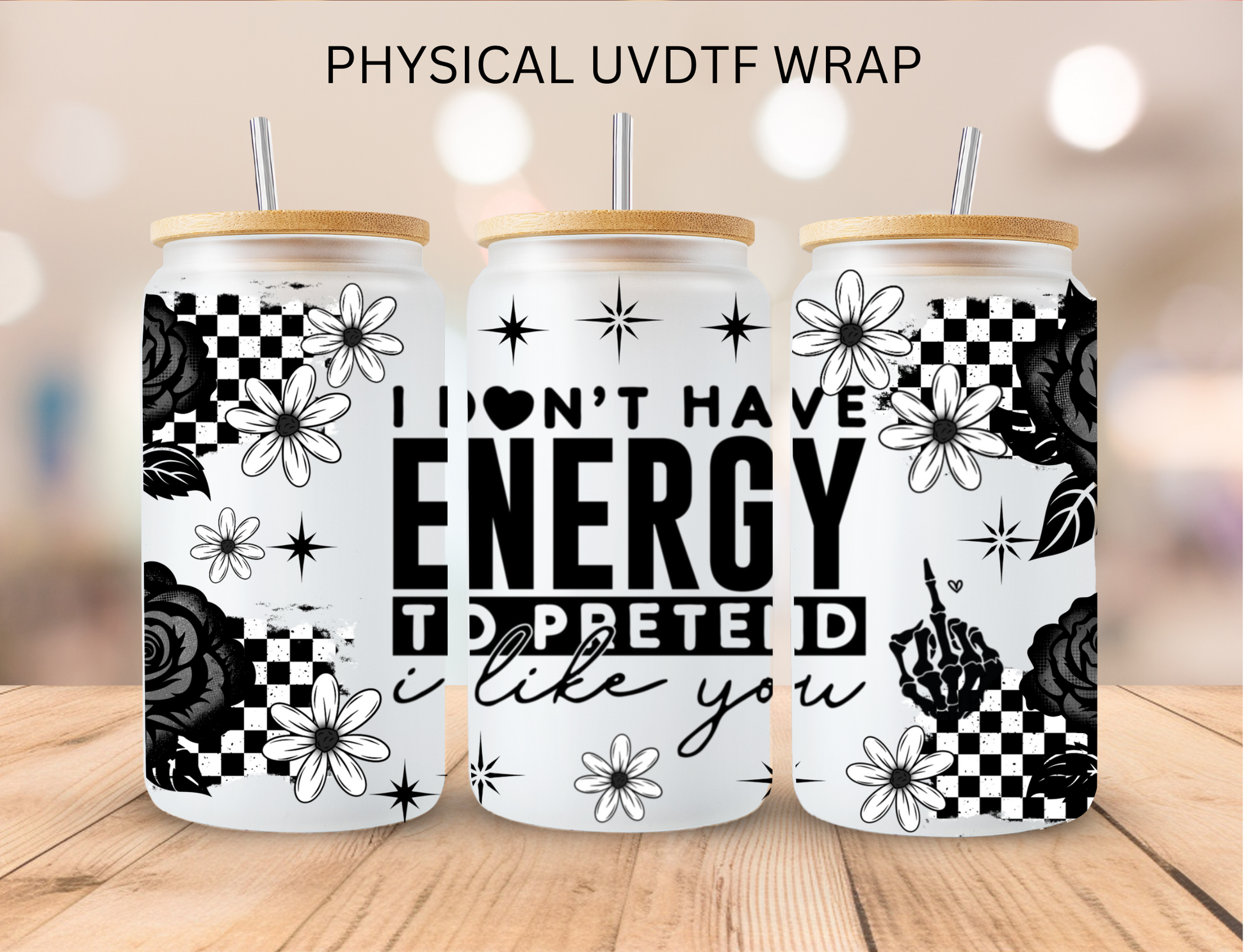 Checkered I Don't Have Energy - 16 oz / 20 oz Libby UV DTF Wrap