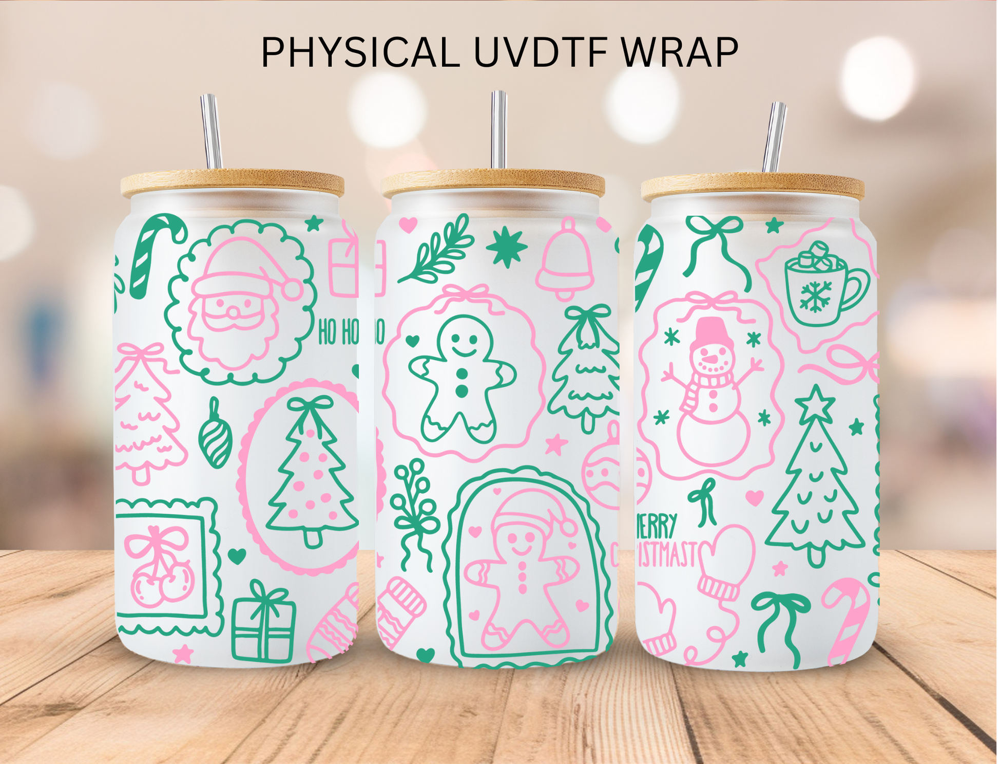 Christmas Pink N Teal Silhouette - 16 oz / 20 oz Libby UV DTF Wrap