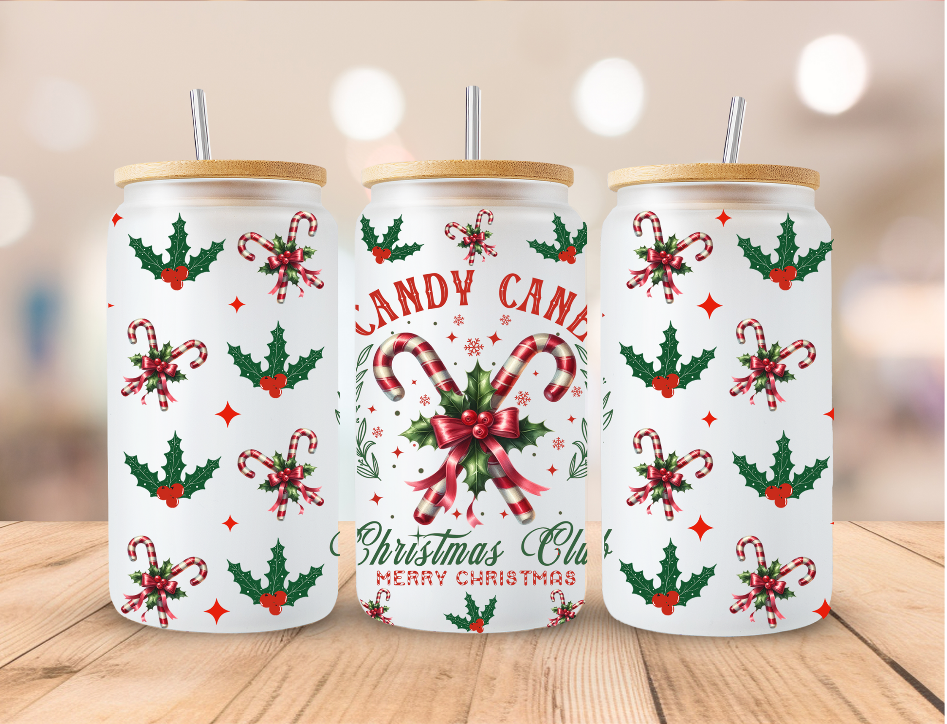 Christmas Candy Cane Christmas Club - 16 oz / 20 oz Libby UV DTF Wrap