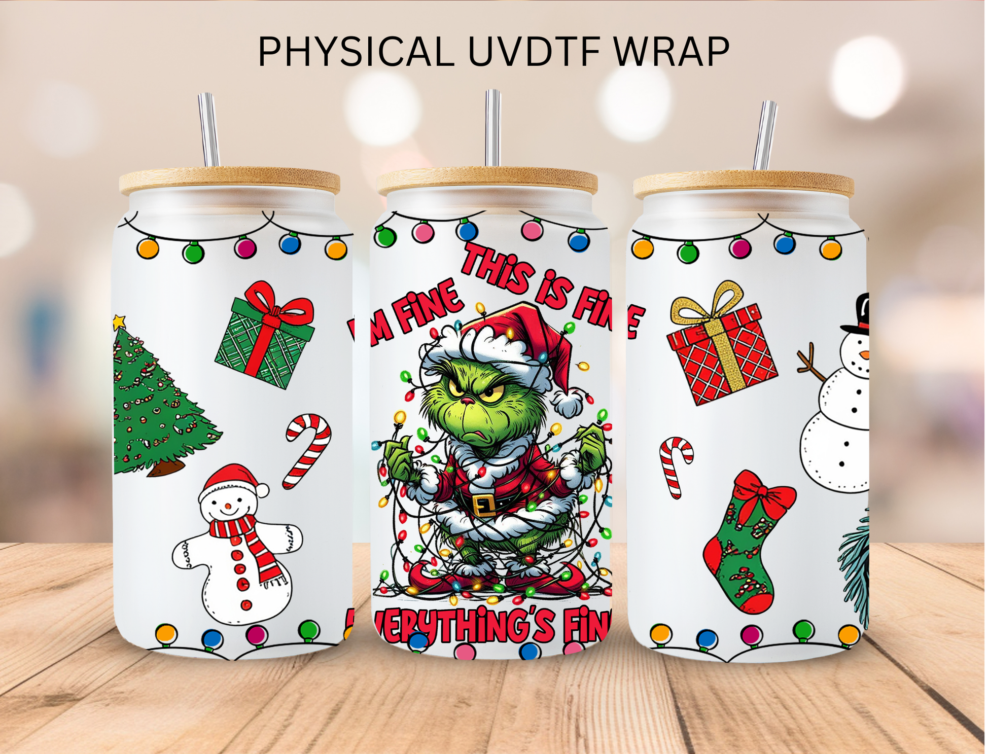 Christmas I'm Fine Mean Green 2 - 16 oz / 20 oz Libby UV DTF Wrap