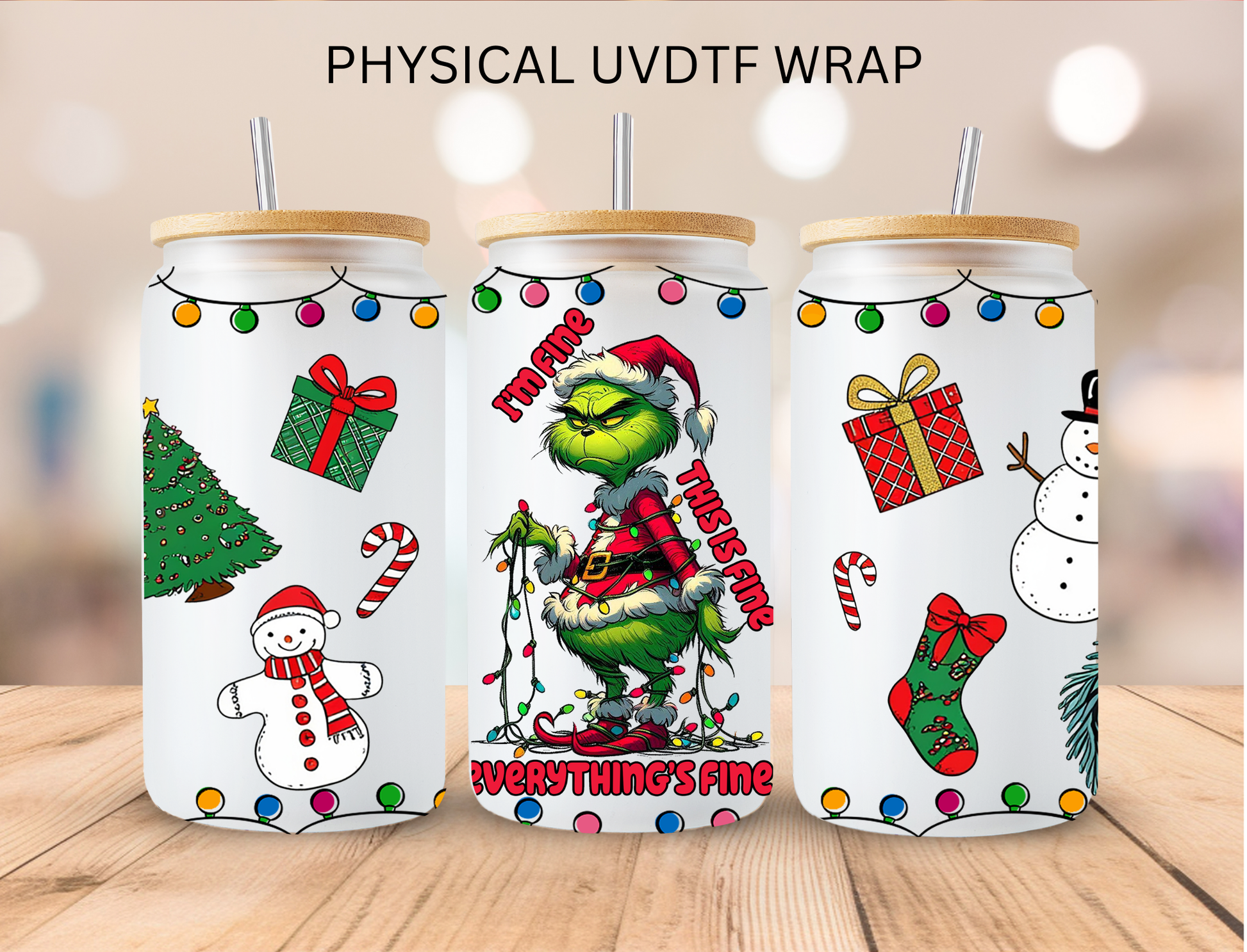 Christmas I'm Fine Mean Green 3 - 16 oz / 20 oz Libby UV DTF Wrap