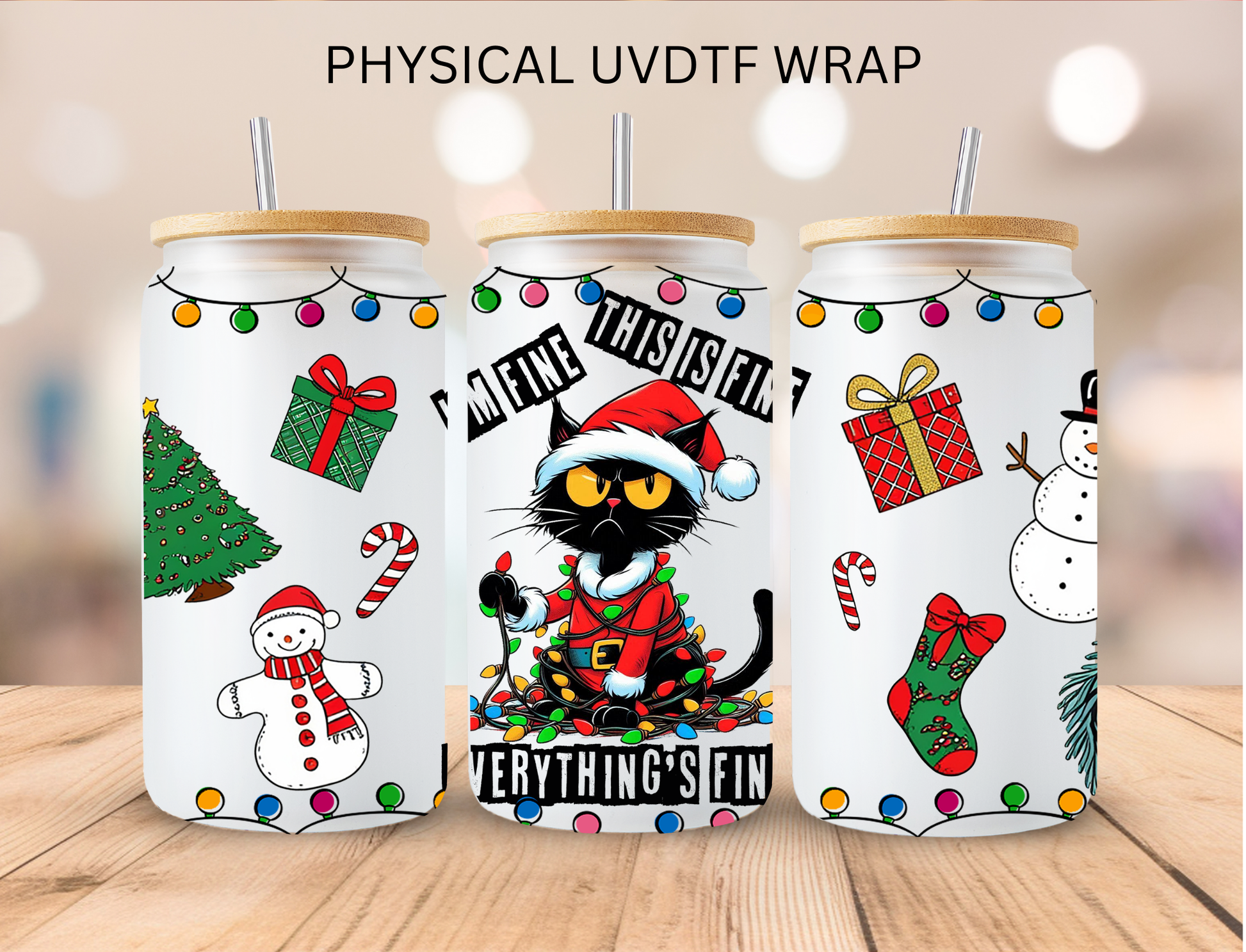 Christmas I'm Fine Sassy Kitty - 16 oz / 20 oz Libby UV DTF Wrap