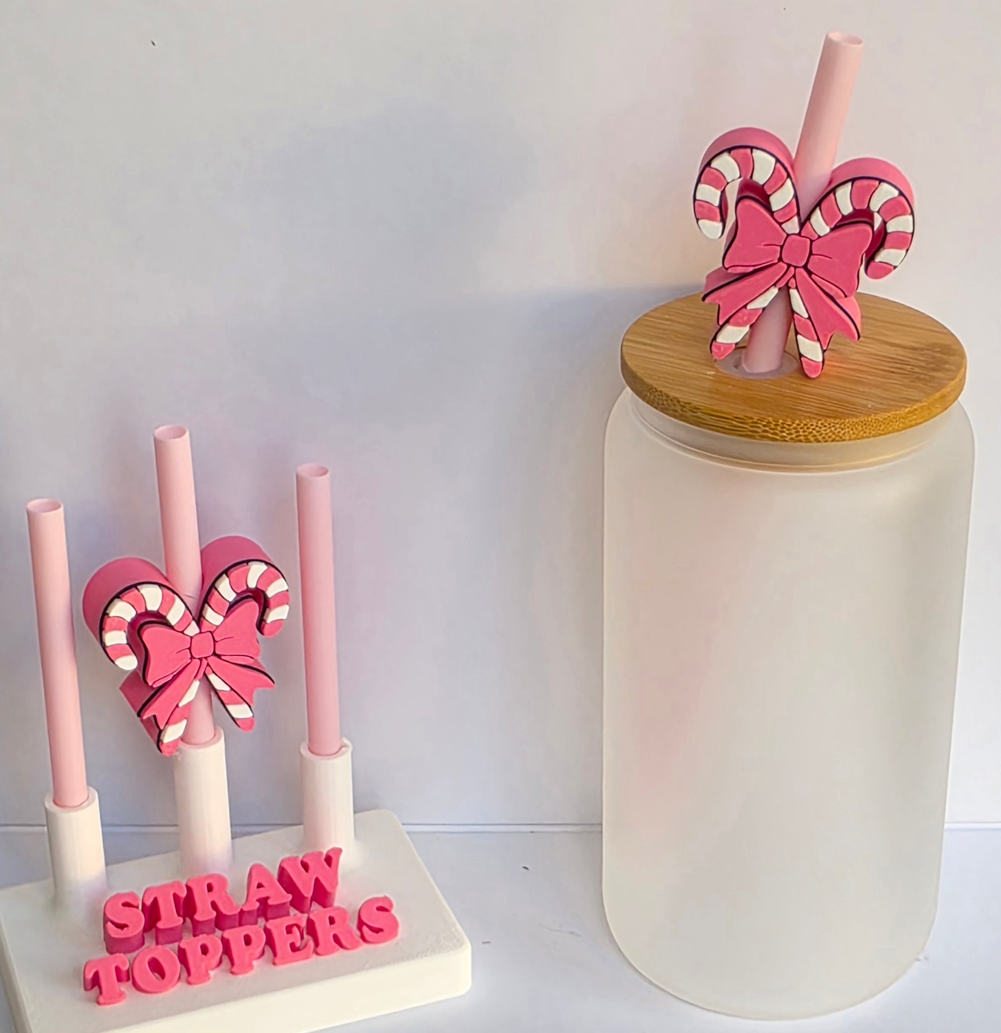 Christmas Pink Double Candy Canes 3D Printed Straw Topper