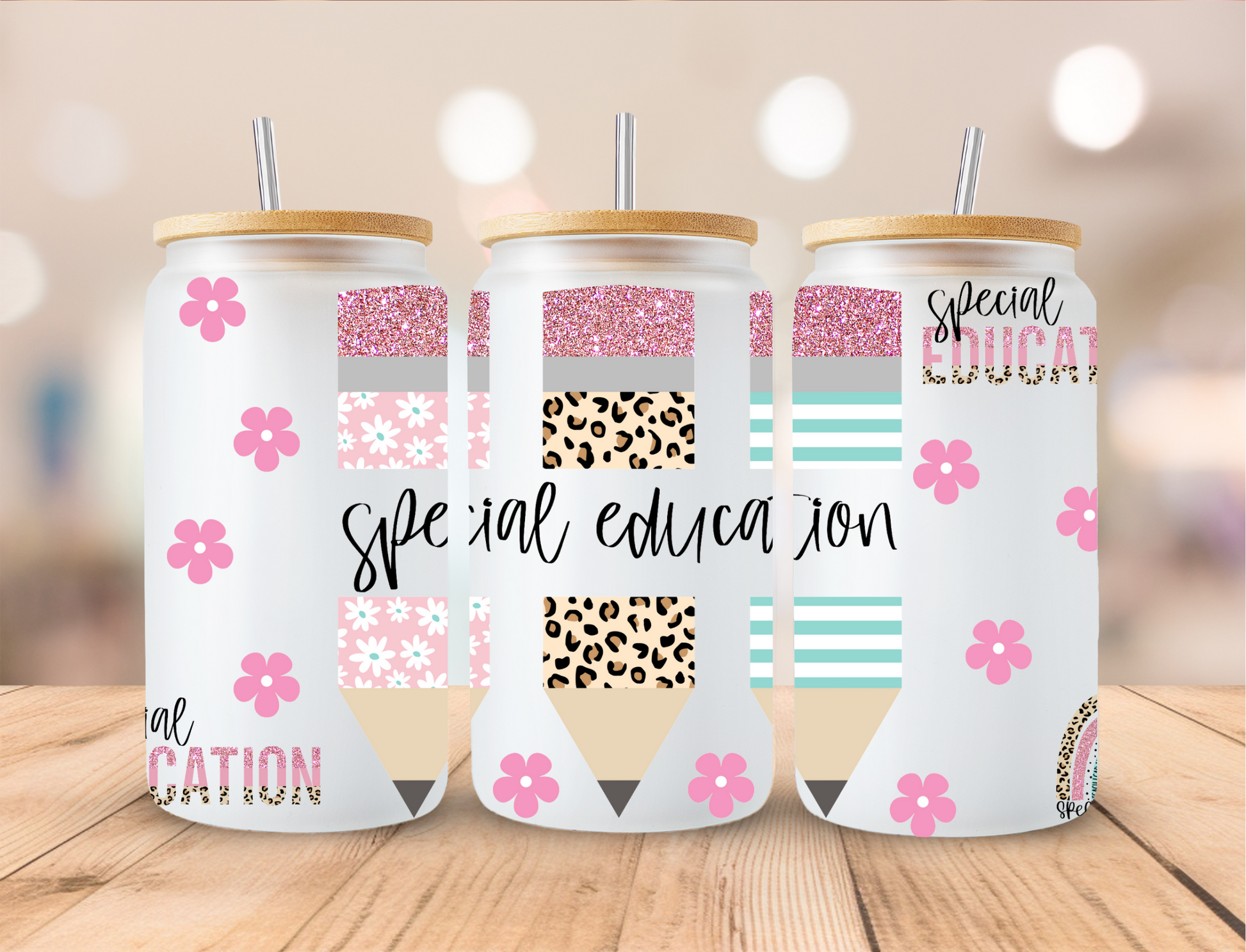 Floral Special Education - 16 oz Libby UV DTF Wrap