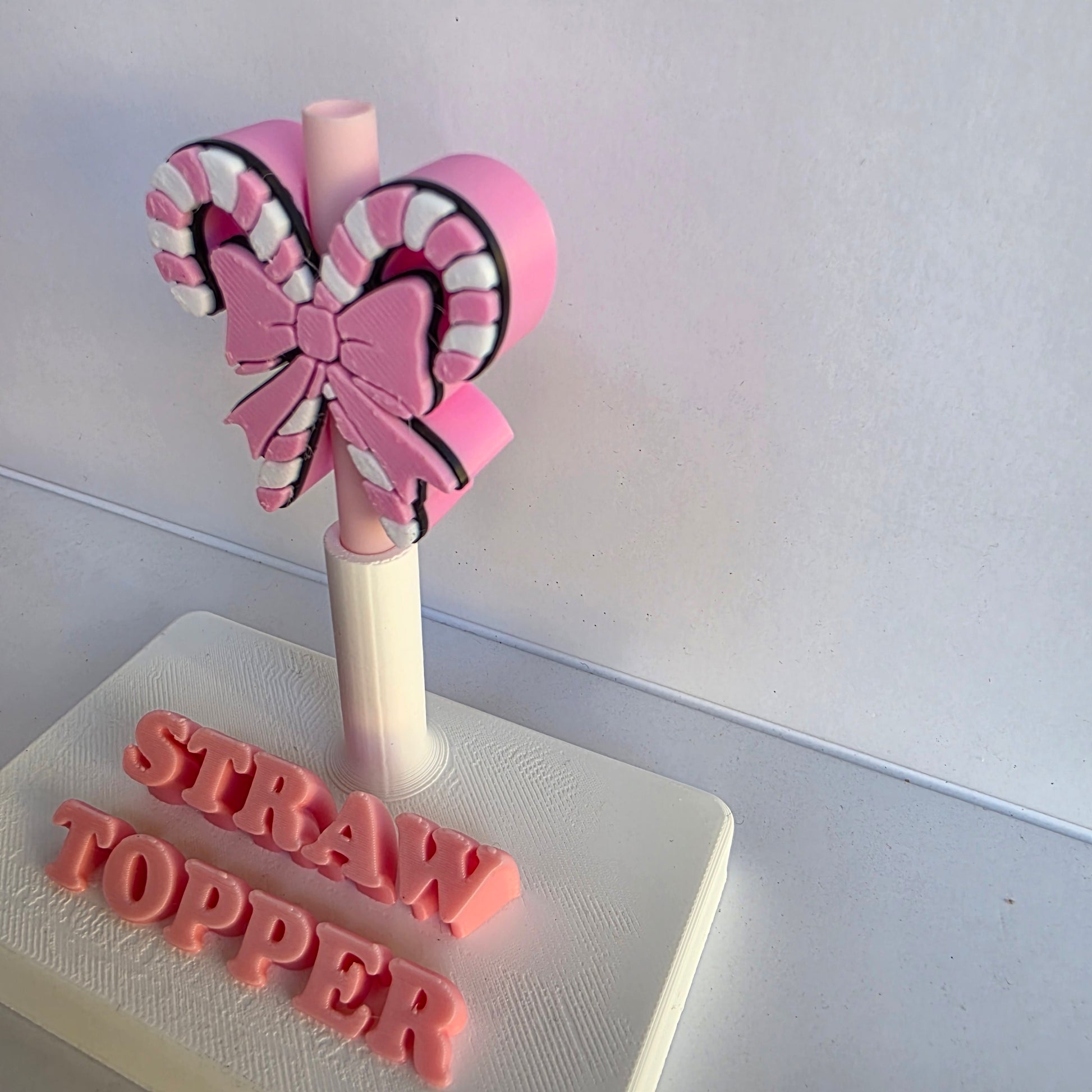 Christmas Pink Double Candy Canes 3D Printed Straw Topper