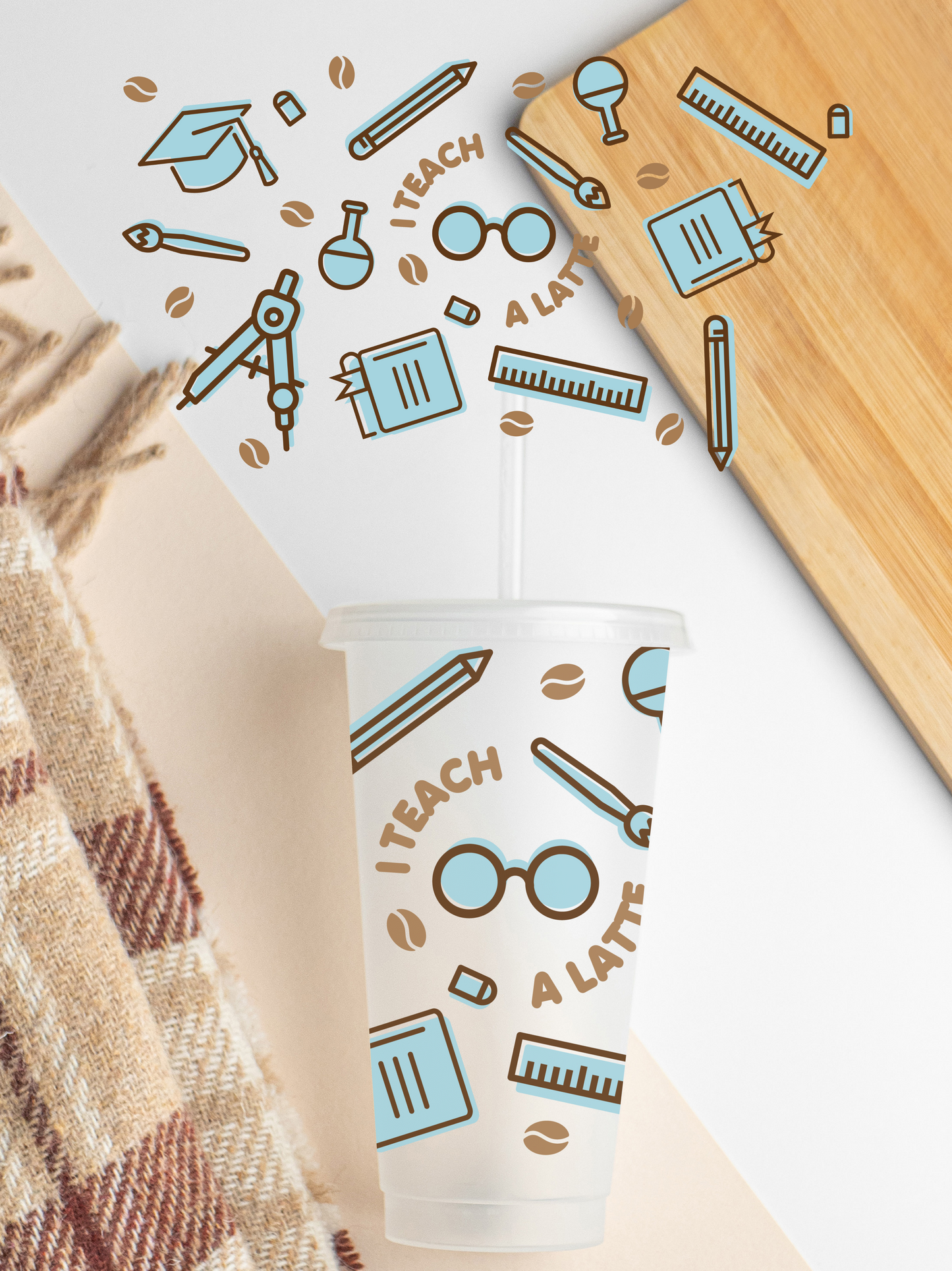 I Teach A Latte - 24 oz cold cup Wrap NO HOLE UVDTF