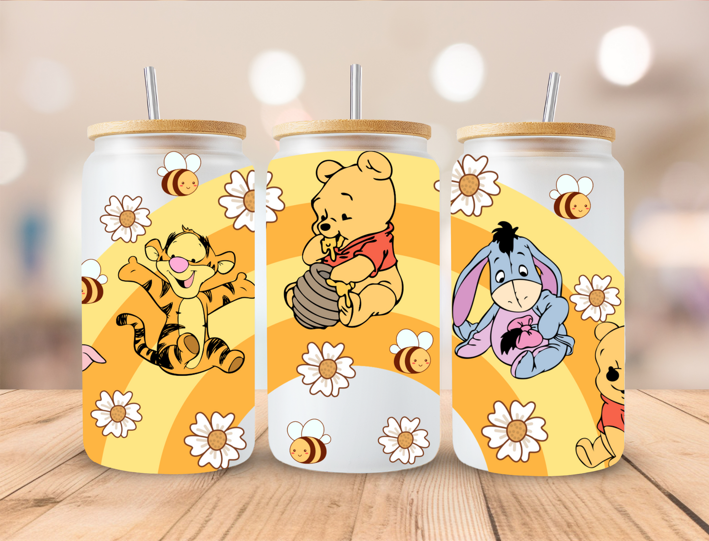 Yellow Bear And Friends Rainbow - 16 oz / 20 oz Libby UV DTF Wrap