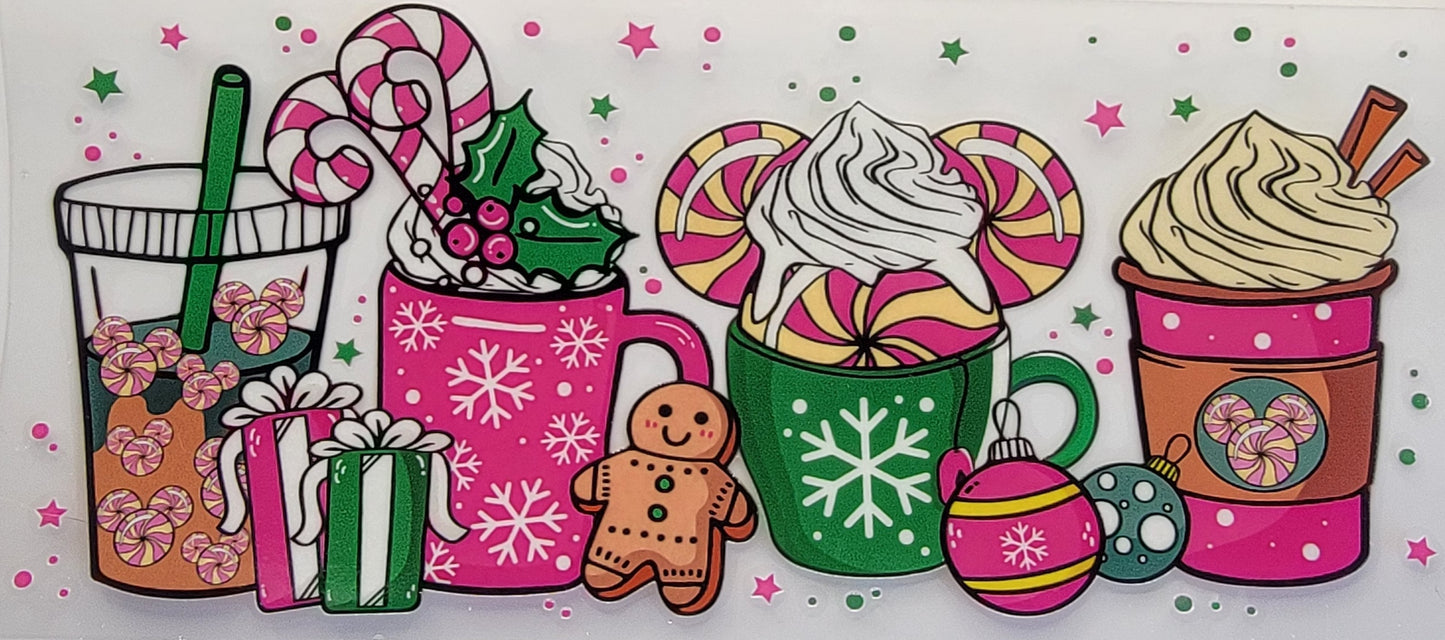 Pink Christmas Coffee Frap - 16 oz Libby UV DTF Wrap RTS