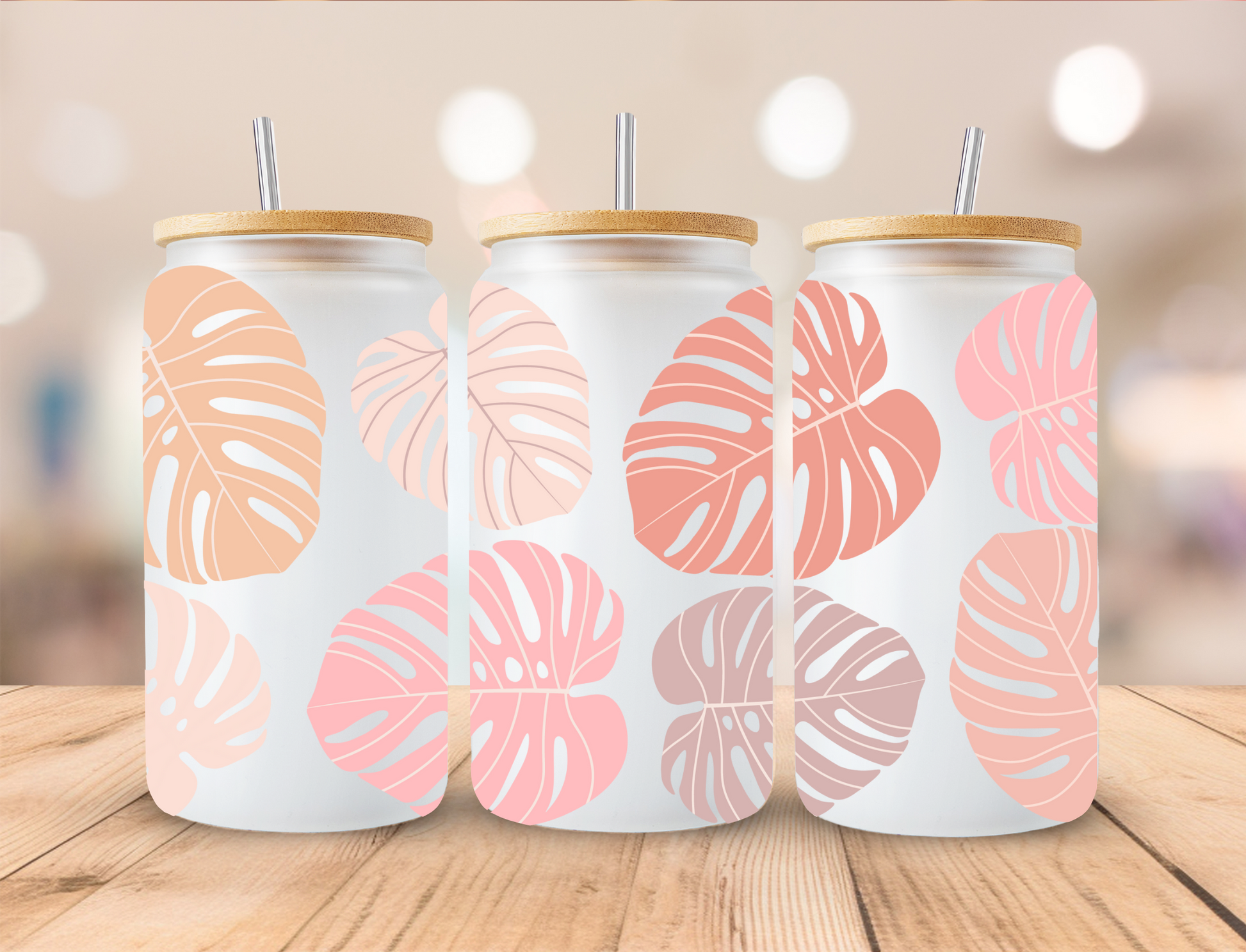 Pastel Monstera Leaves - 16 oz / 20 oz Libby UV DTF Wrap