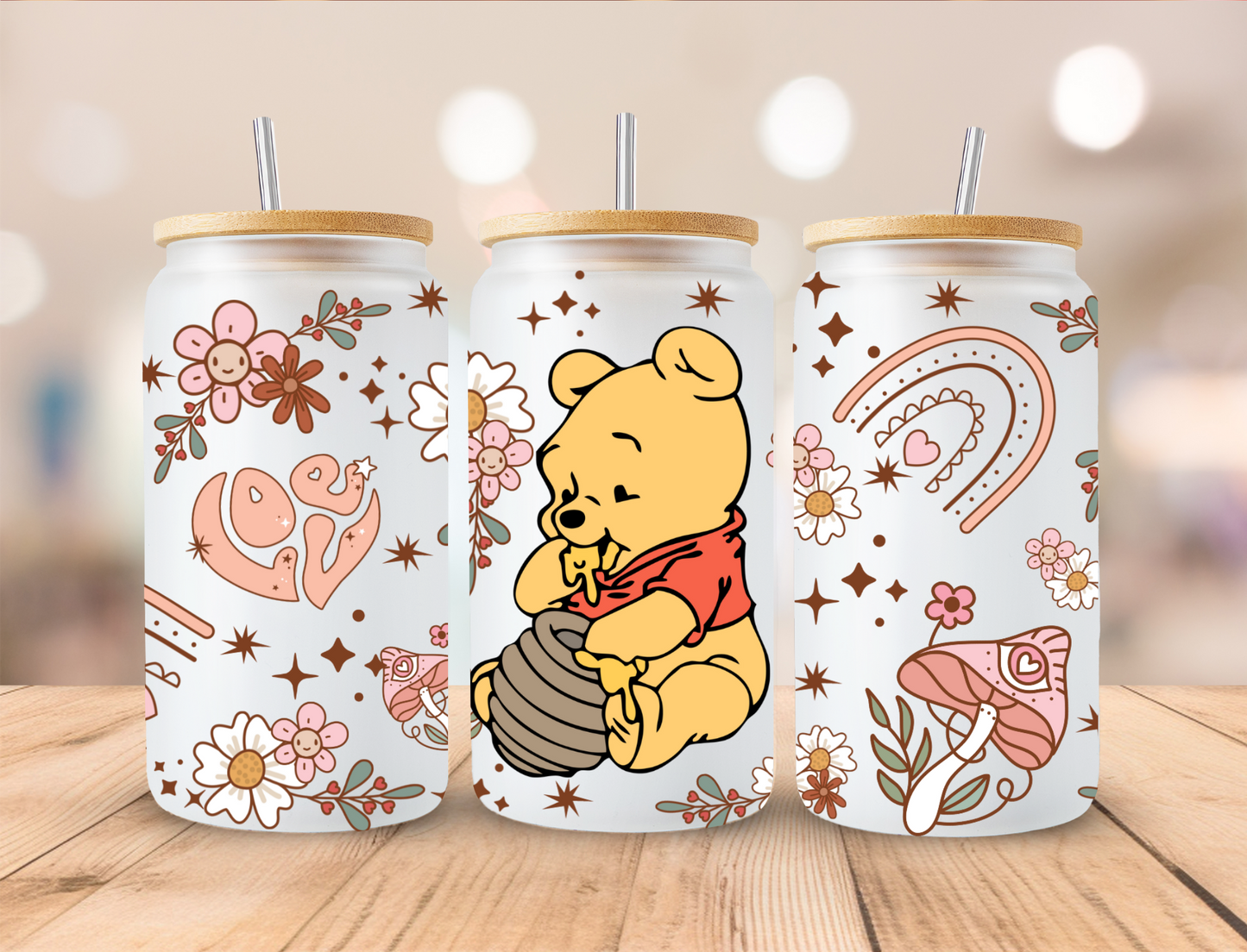 Retro Yellow Bear Rainbow - 16 oz / 20 oz Libby UV DTF Wrap