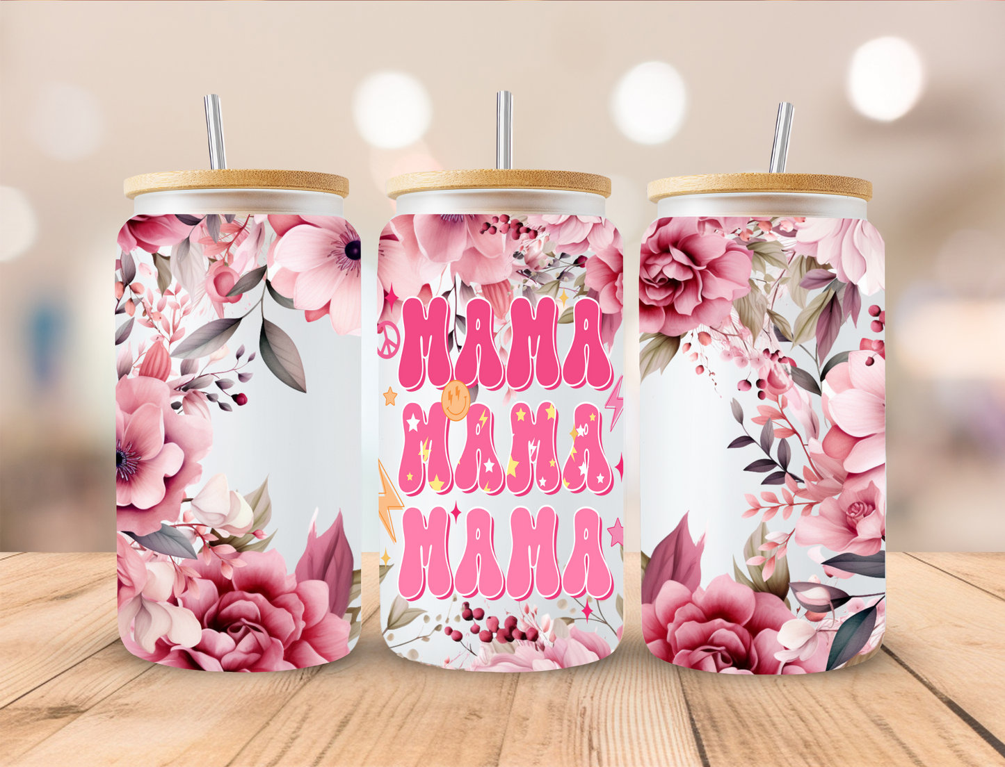 Floral Mama Mama Mama Mothers Day - 16 oz / 20 oz Libby UV DTF Wrap