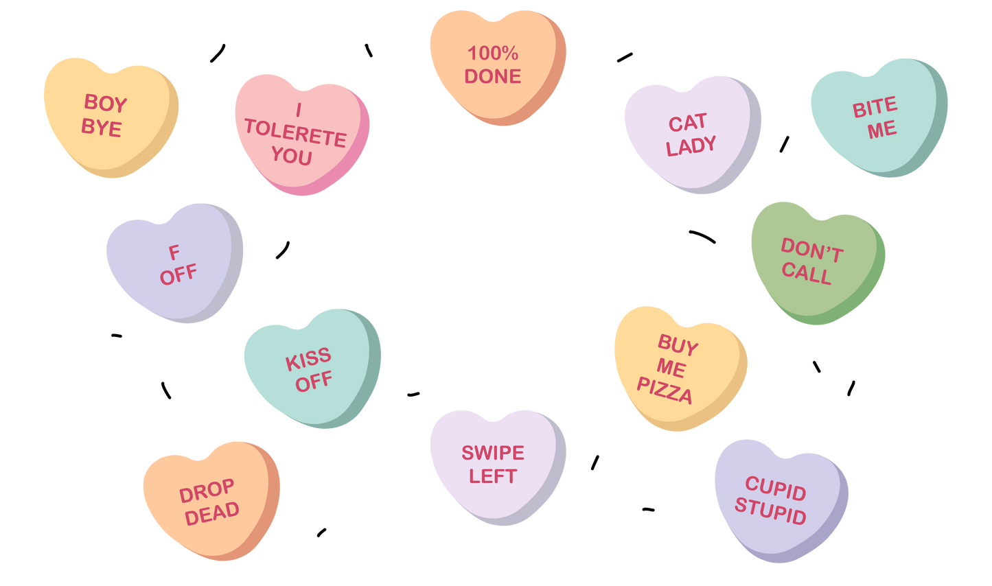 Valentine Candy Word Hearts HOLE - 24 Oz cold cup UV DTF Wrap