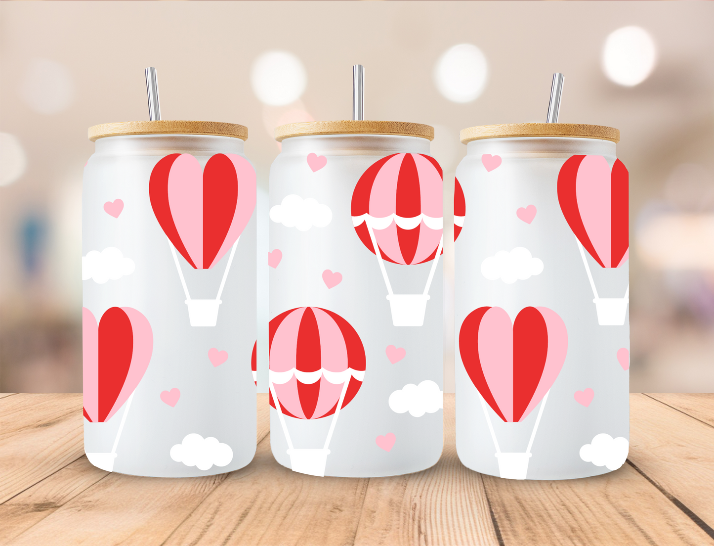 Valentines Hearts Hot Air Balloon - 16 oz / 20 oz Libby UV DTF Wrap