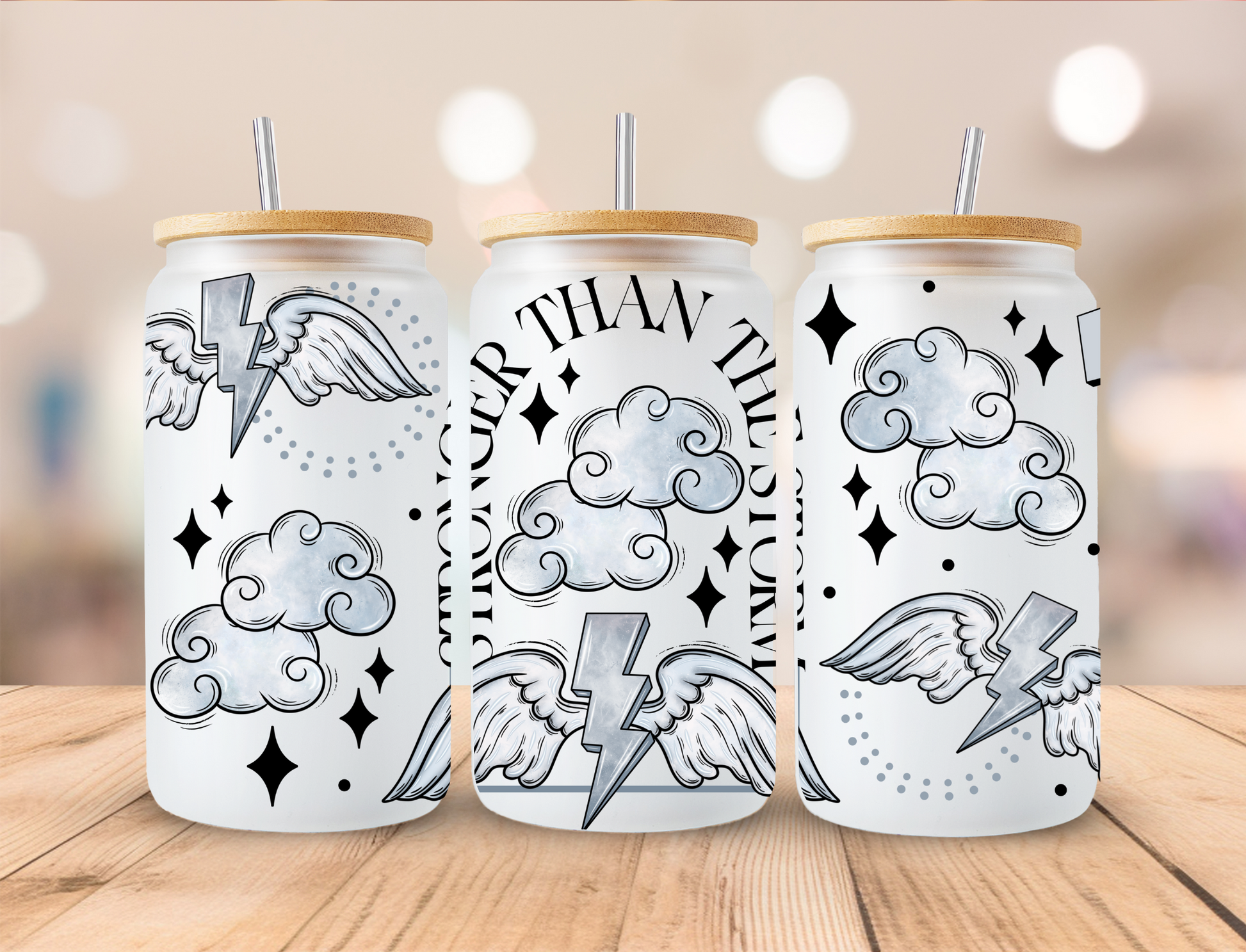 Stronger Than The Storm Bolt - 16 oz Libby UV DTF Wrap