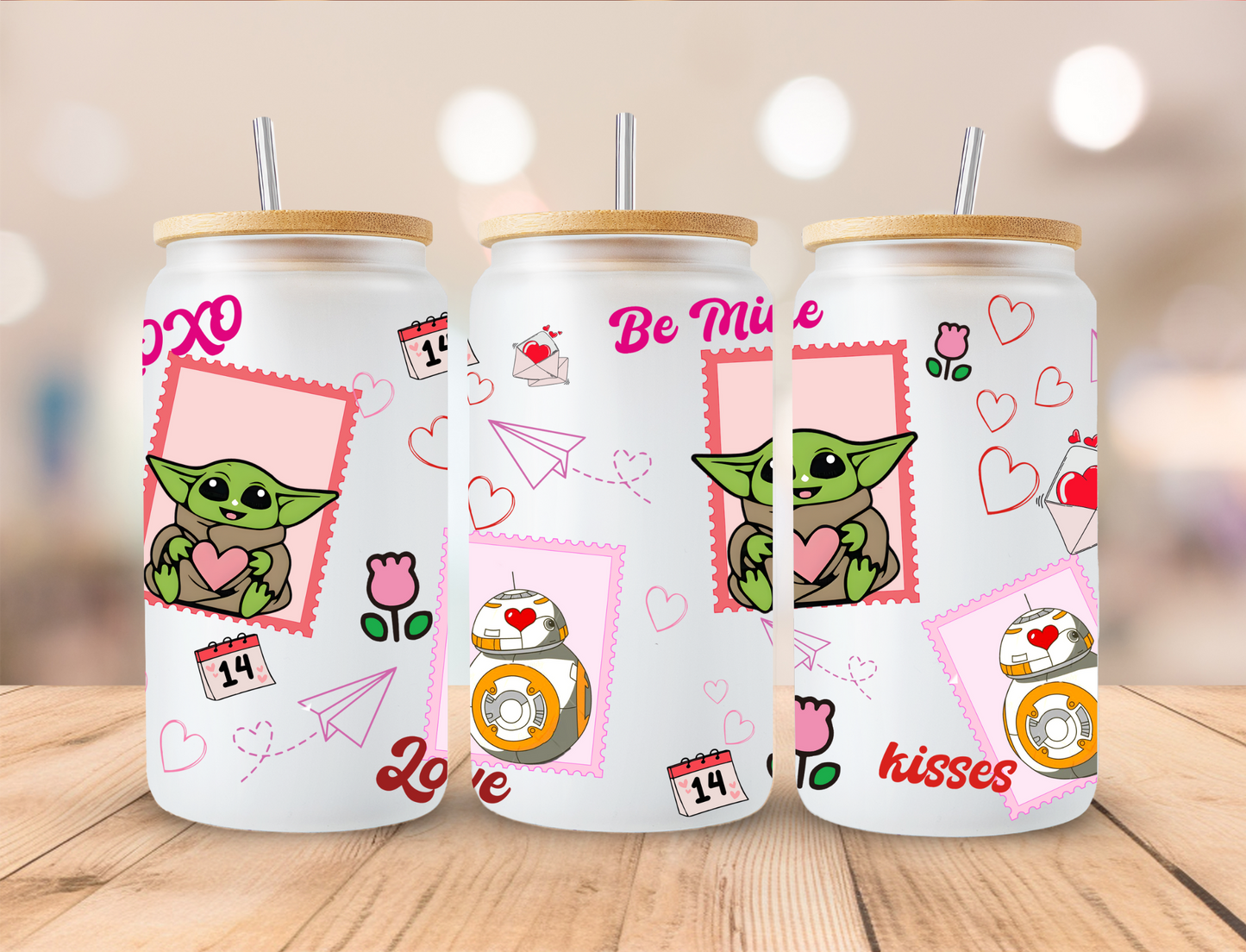 Valentines Green Alien Stamps - 16oz/20oz Libby UV DTF Wrap