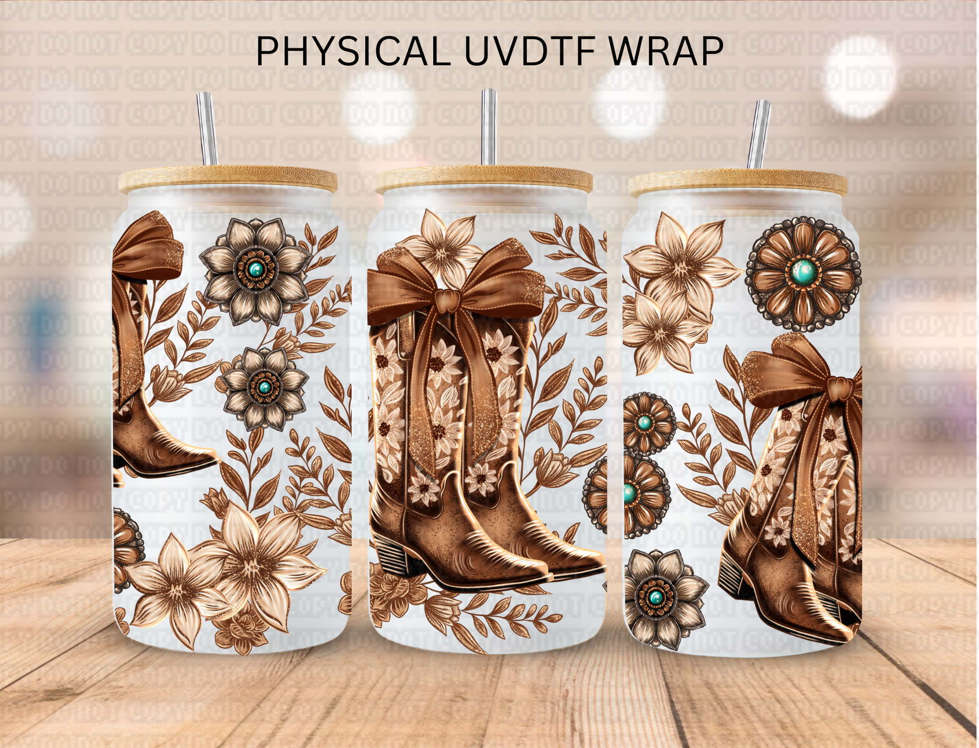 Western Brown Coquette Cowgirl Boots - 16 oz / 20 oz Libby UV DTF