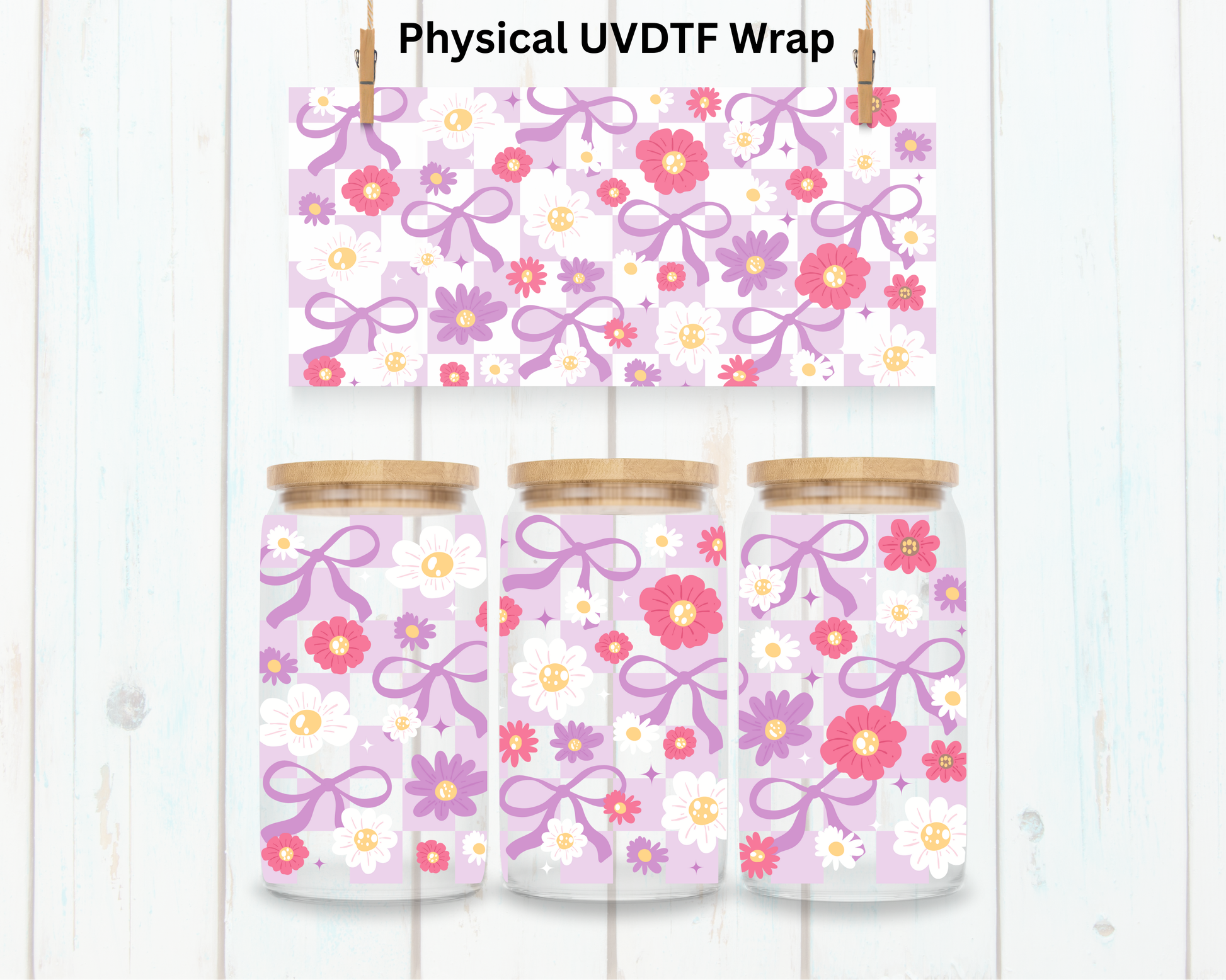Checkered Floral Coquette Bow - 16 oz / 20 oz Libby UV DTF