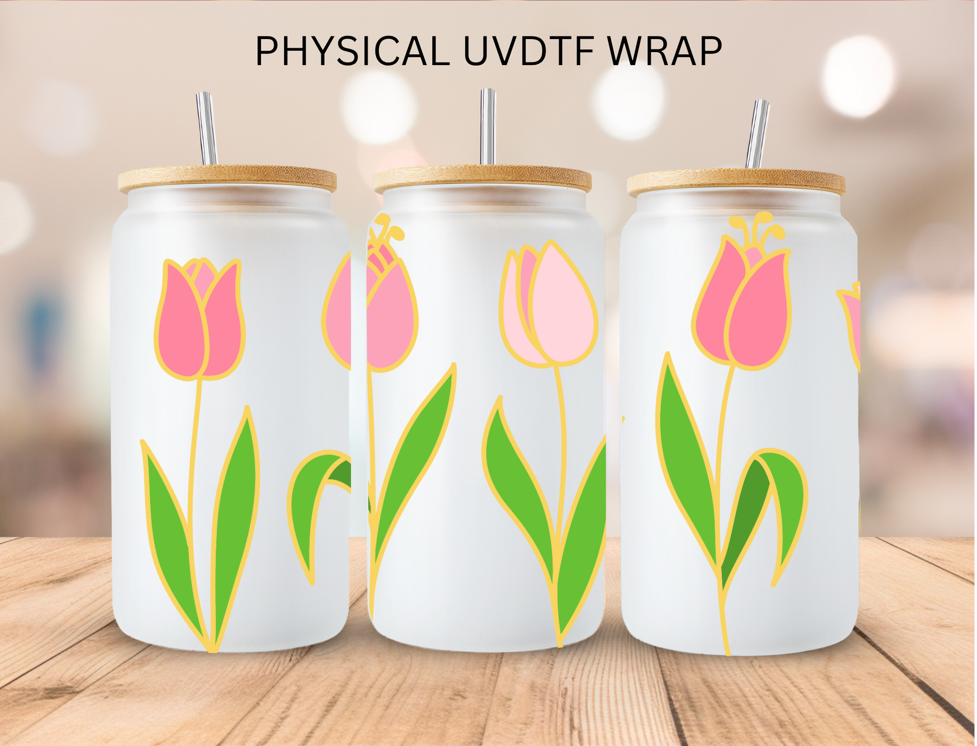 Pink Tulips - 16 oz / 20 oz Libby UV DTF Wrap