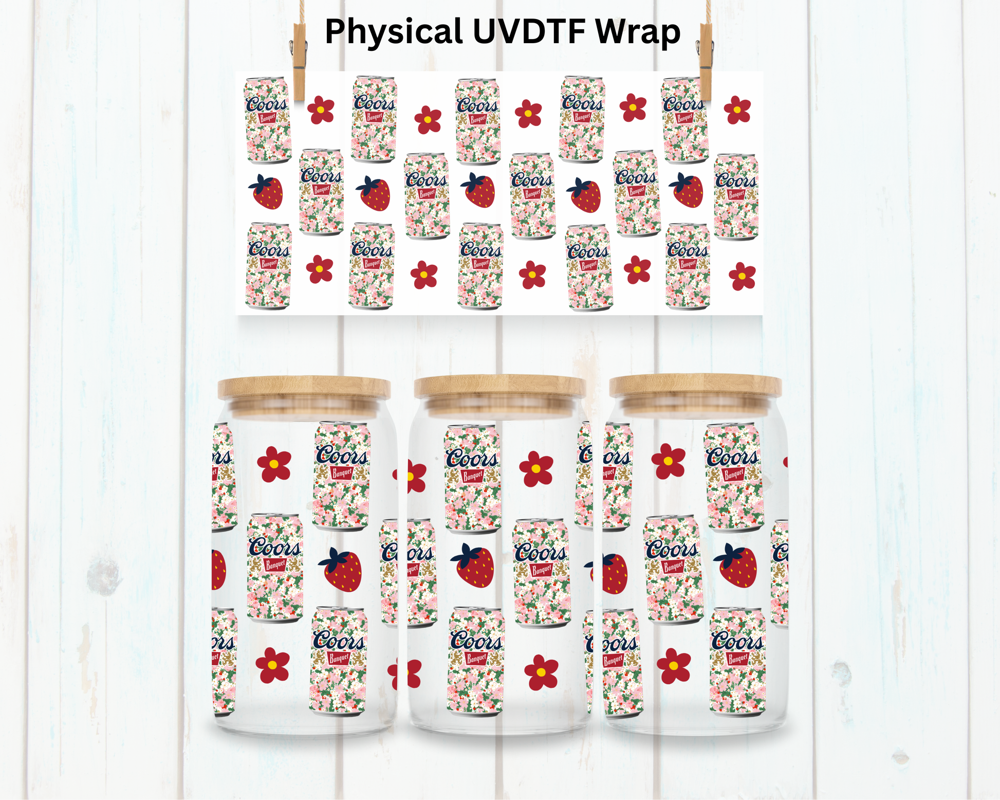 Strawberry Canned Beer - 16 oz / 20 oz Libby UV DTF