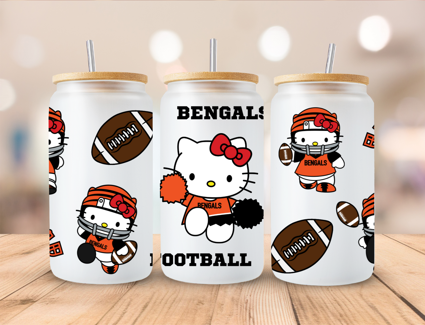 Football Bengals Kitty - 16 oz / 20 oz Libby UV DTF Wrap